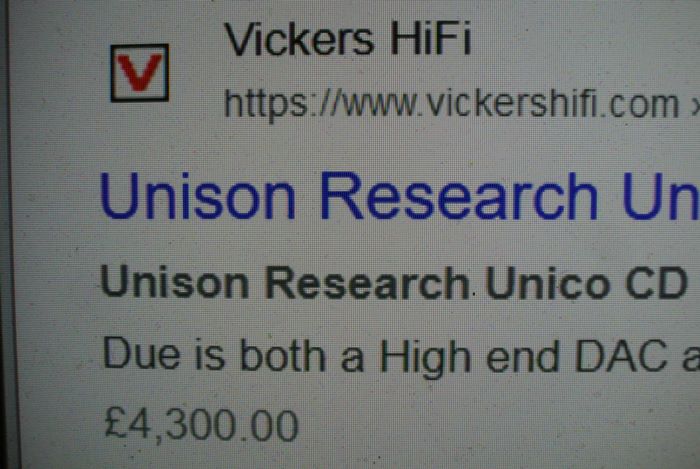 ราคาขายเฉพาะ Unison Research Unico CD เพียงเครื่องเดียวในอังกฤษ GBP £4,300.00 หรือ 197,000 บาท ยังไม่รวมภาษีฯ และค่าขนส่งอีกประมาณ 5,000 บาท