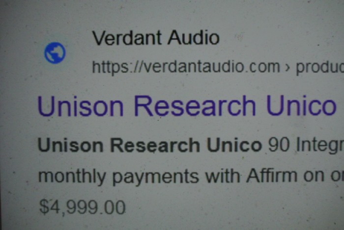 ราคาขายเฉพาะ Unison Research Unico Amplifier เพียงเครื่องเดียวในอเมริกา USD $4,999.00 หรือ 180,000 บาท ยังไม่รวมภาษีฯ และค่าขนส่งอีกประมาณ 5,000 บาท