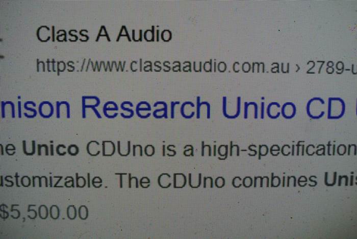 ราคาขายเฉพาะ Unison Research Unico CD เพียงเครื่องเดียวในอเมริกา USD $5,500.00 หรือ 198,000 บาท ยังไม่รวมภาษีฯ และค่าขนส่งอีกประมาณ 5,000 บาท