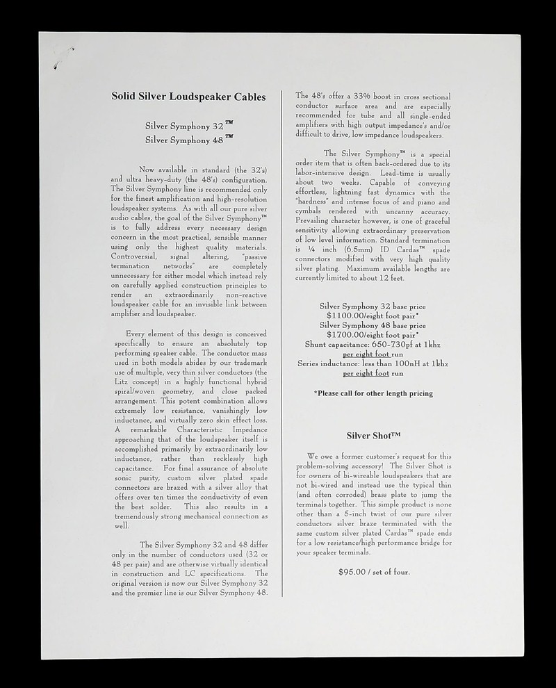 Solid Silver Loudspeaker Cables Silver Symphony 32 T Silver Symphony 48T