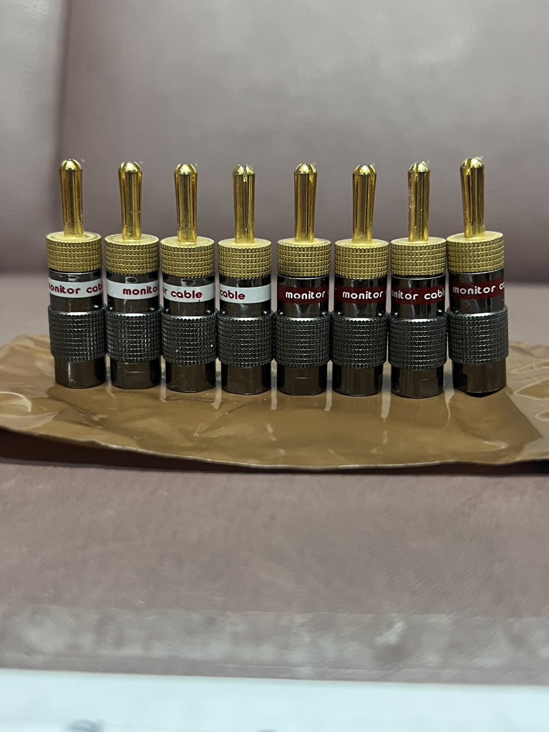 MONITOR CABLE BANANA PLUG MADE IN USA เดิมสวยมากเหมือนใหม่ ทองแท้ทุกตัว ใช้งานเหมือนใหม่ ฟังเพลงเสียงดีสุดยอดระดับ 5ดาว ขายยากSETถูกที่สุดรวม 8ตัวเพียง 1500.-เท่านั้น