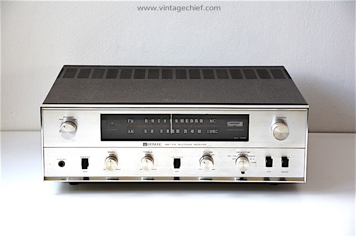 PIONEER SX34B MADE IN JAPAN เครื่องบ้านเรา ไฟ 220V รับคลื่นบ้านเรา FM 88-108 MHz รับชัดใช้งานเหมือนใหม่ หรูหราด้วยหน้าปัดเข็ม VU ฟังเพลงเสียงดีสุดยอดระดับ 5ดาว ใช้งานเหมือนใหม่ วัตต์แท้วัตต์เต็ม กำลังสำรองเยอะ หลอดภายในเพียบ 11หลอด VINTAGEสุดยอดด้วยอายุเกือบ60ปี *1966* เจ้าของเพิ่งส่งเช็คระบบหมดไปเกือบ2000.-ส่งมาฝากขายหน้าร้านถูกๆเพียง 9900.-เท่านั้น