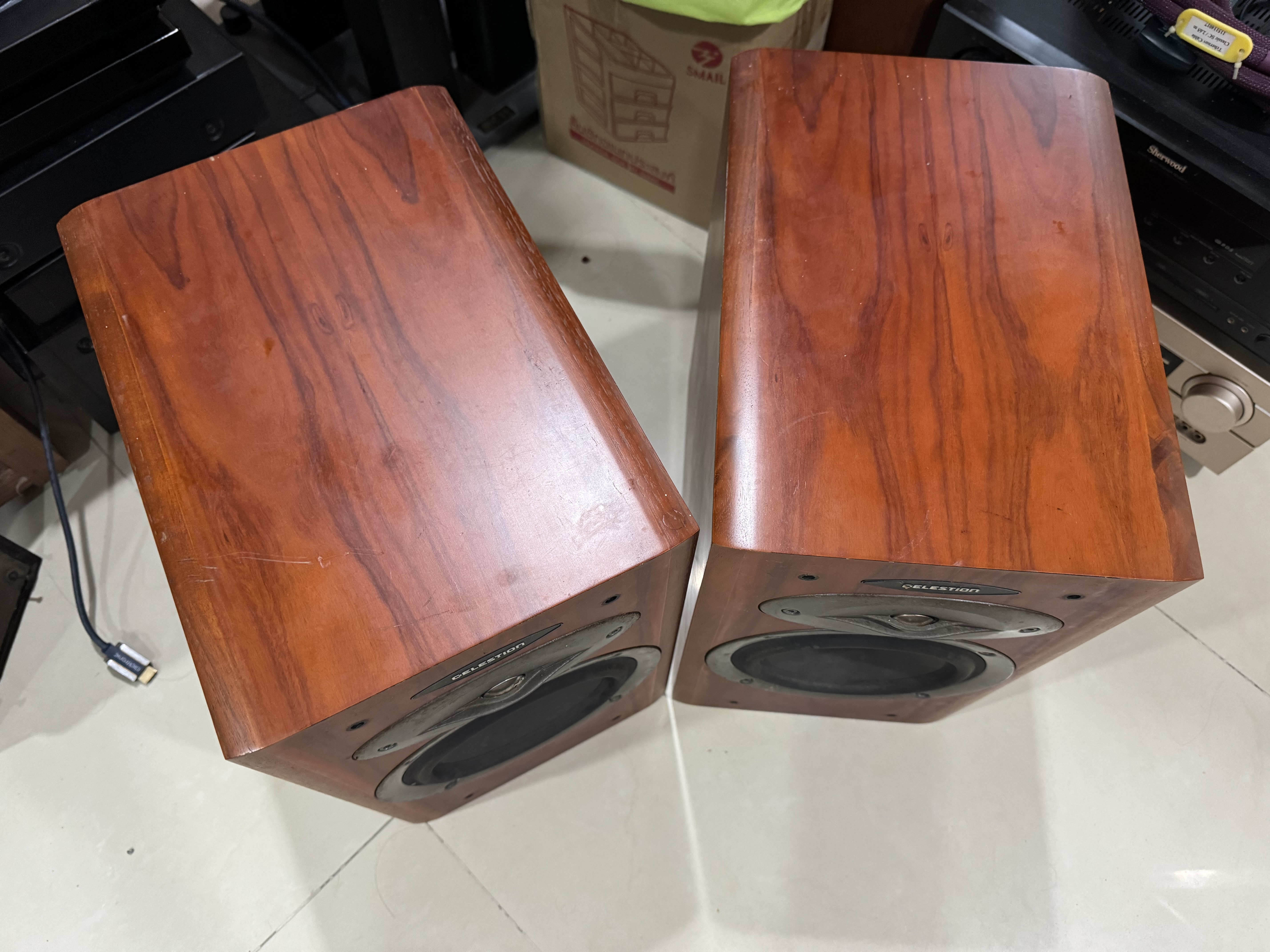 ลำโพงวางหิ้งตู้ใหญ่ Celestion A1 หนักข้างละ 12kg. วูฟเฟอร์ 6.5 นิ้ว แหลมโลหะ 1 นิ้ว มีรอยตามการใช้งานทั่วไป เสียงยังดีปกติ