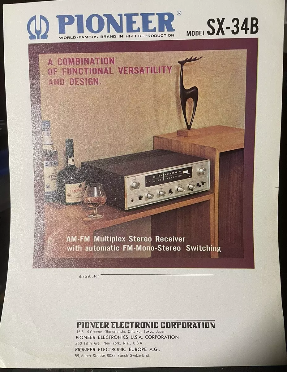 Model: Stereo Receiver SX-34B - Pioneer Corporation; Tokyo