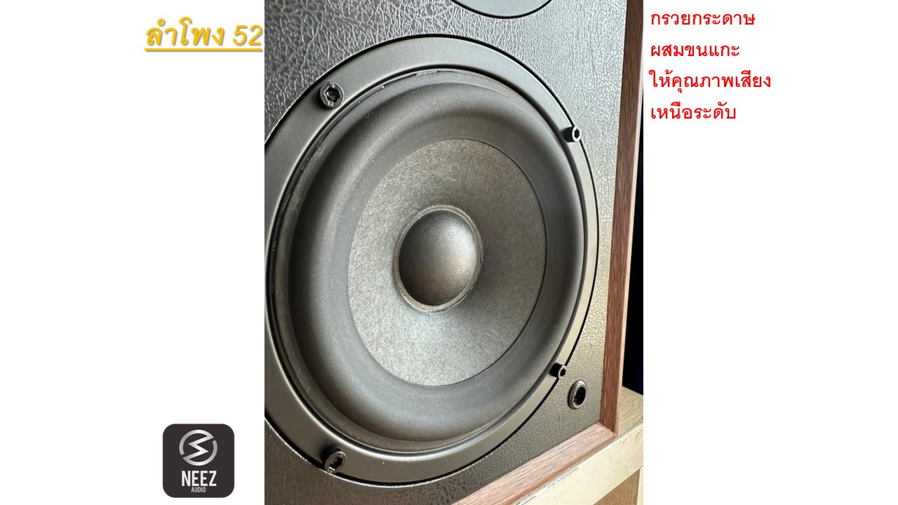 Woofer: 5.25" กรวยกระดาษผสมขนแกะ ขอบยางนุ่มให้ตัวสูง