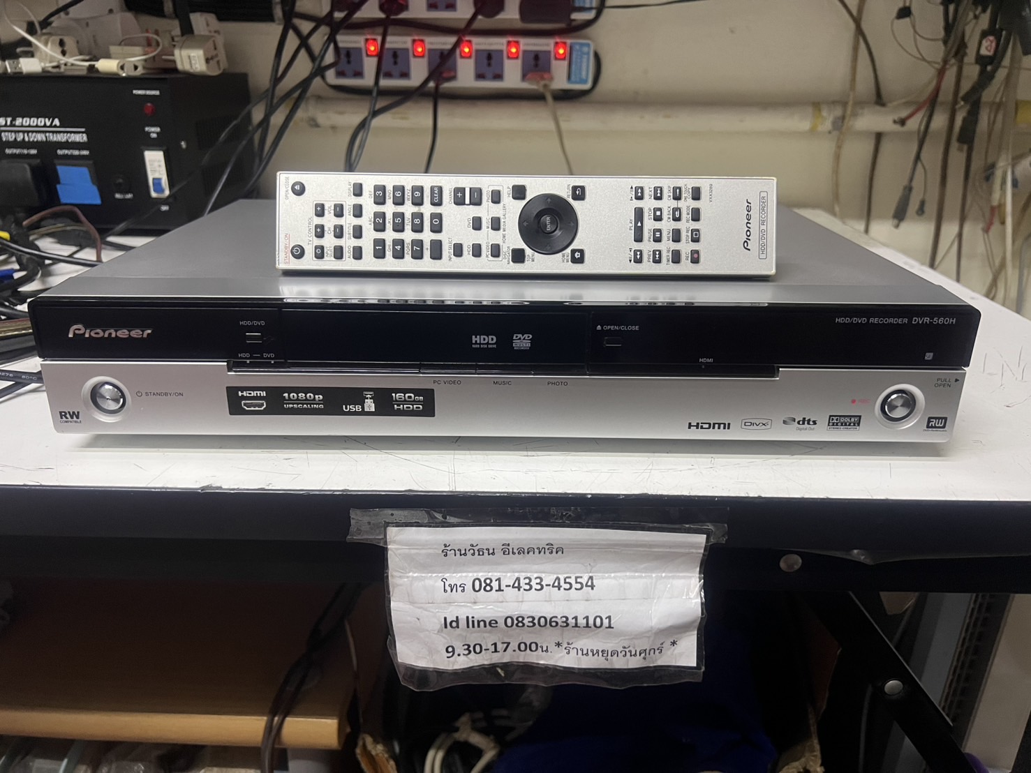 PIONEER DVR-560H-S + รีโมทคอนโทรล เครื่องบ้านเรา ไฟ 220V สภาพเดิมสวยมากเกือบเหมือนใหม่ รุ่นใหญ่ HDD 160GB ไม่ใช่ 80GB อ่านแผ่นปกติทุกแผ่น HDDใช้งานเหมือนใหม่ ดูหนัง + ฟังเพลงเสียงดีเกินราคา ออกใหม่ 24900.-เจ้าของส่งมาฝากขายหน้าร้านถูกๆเพียง 4900.-เท่านั้น