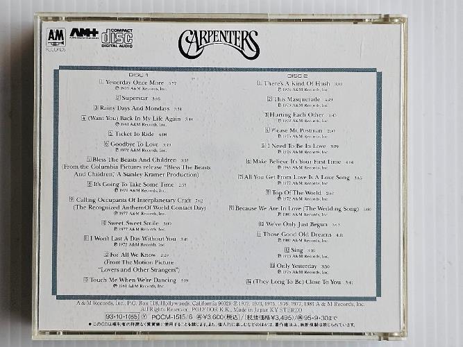 1. CARPENTERS Yesterday Once More 2 แผ่นรวม 27 เพลง เป็นอัลบั้ม CD ที่รวบรวมผลงานเพลงที่ดีที่สุดของราชินีนักร้องระดับตำนานโลกผู้ยิ่งใหญ่ที่สุดรายนี้ ที่ไม่มีนักฟังเพลงคนใดไม่รู้จัก