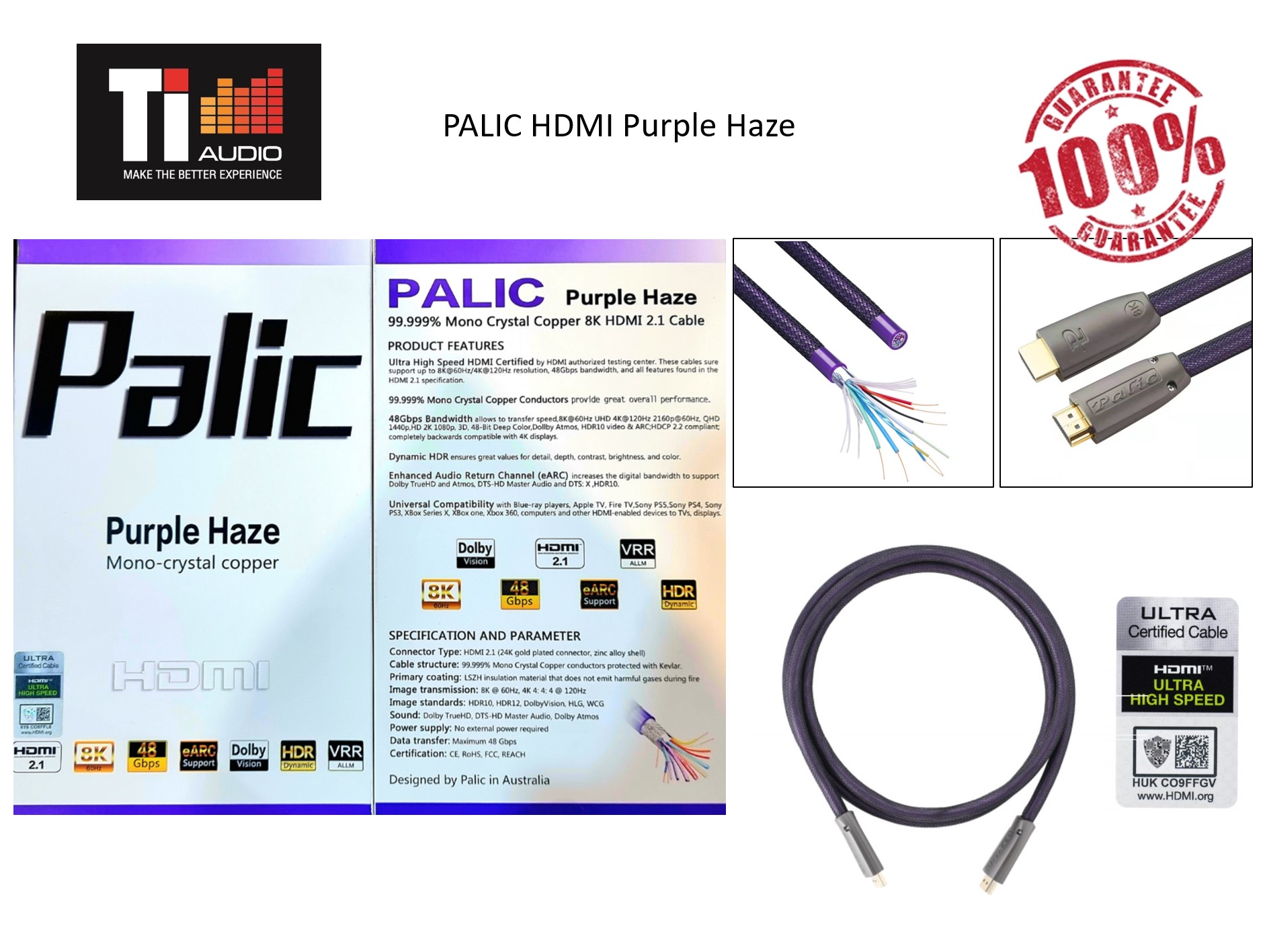 Product details of Palic Purple Haze Mono Crystal Copper 8K HDMI 2.1 Cable