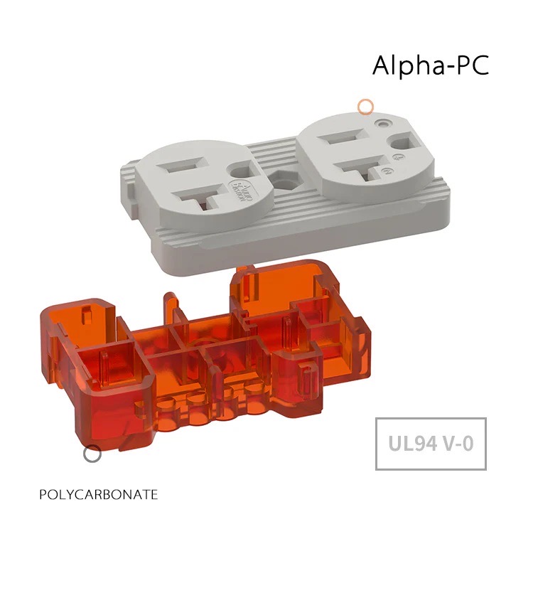สำหรับส่วนของตัวถังหรือ Body ของปลั๊กทำจากโพลีคาร์บอเนต และ Alpha Pc สูตรลับเฉพาะ มีความแข็งแรงทนทาน ไม่มีความร้อนสะสม เพราะถูกออกแบบมาให้ระบายความร้อนได้ดี และยังป้องกันการเกิดไฟฟ้าสถิตได้