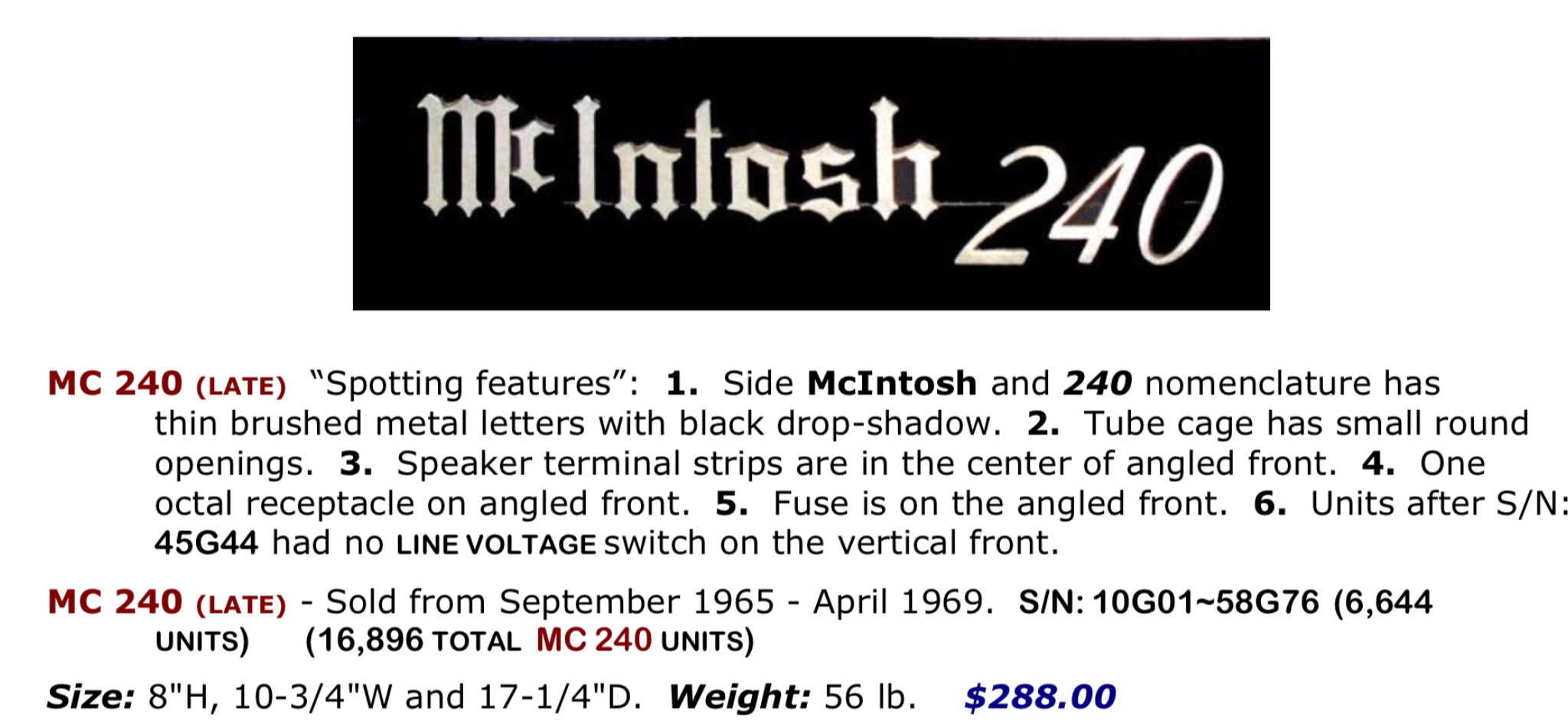 ~ เป็น McINTOSH MC 240 ตัวสุดท้าย