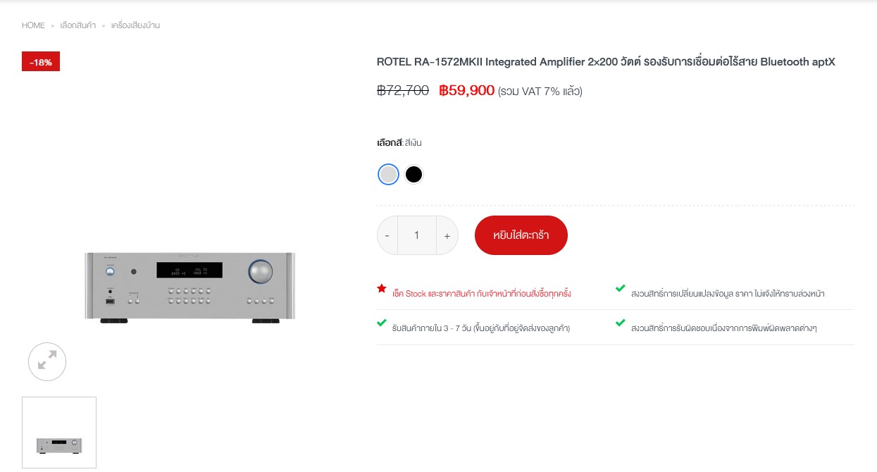 ROTEL RA-1572 MK II เครื่องศูนย์บ้านเรา ไฟ 220V ยกกล่อง ฟังเพลงเสียงดีสุดยอดระดับ 5ดาว ใช้งานเหมือนใหม่ เป็นรุ่นใหญ่ 120W RMS/CH ออกใหม่ 72700.-เจ้าของส่งมาขายหน้าร้านถูกที่สุดเพียง 32900.-เท่านั้น