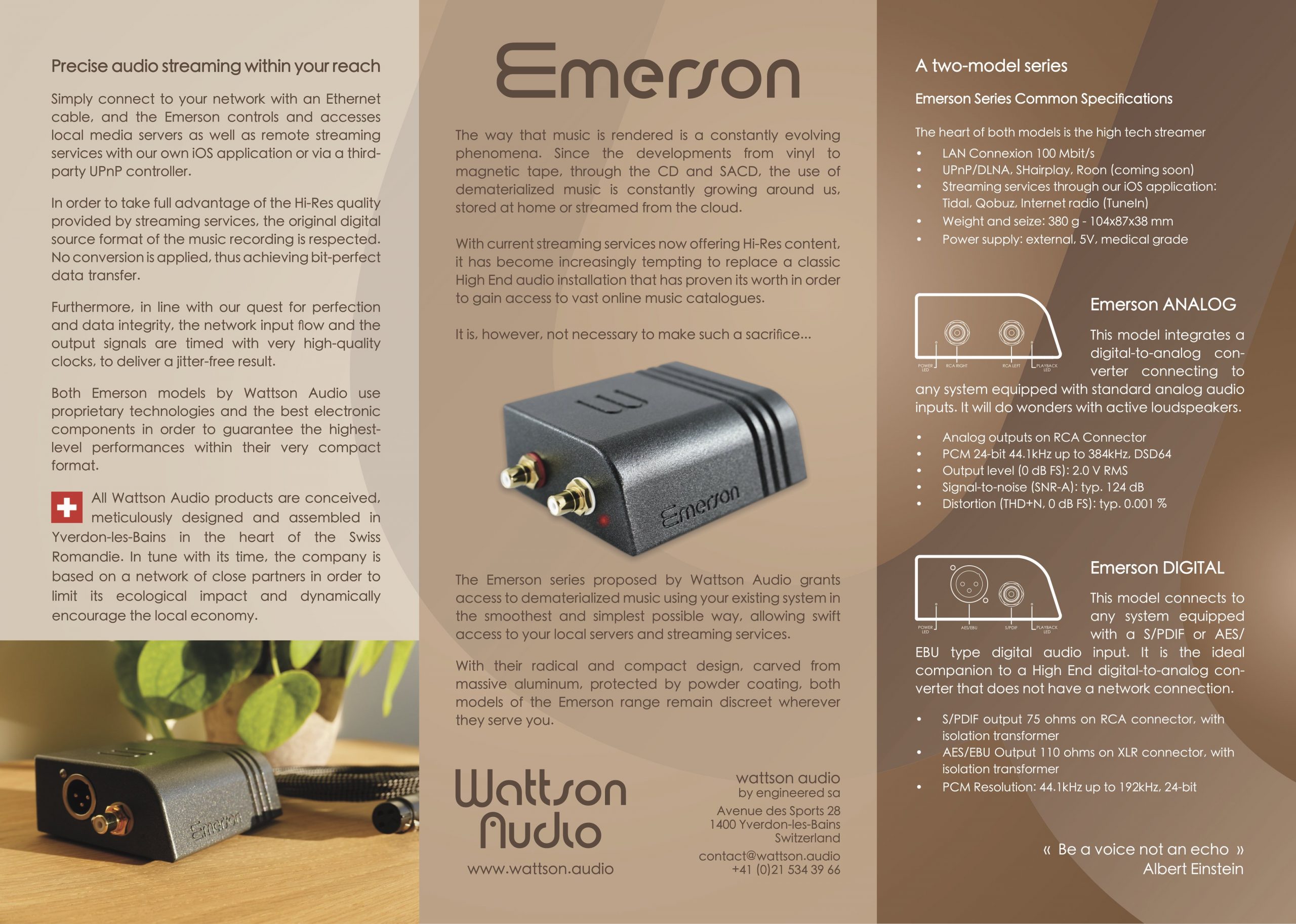 Wattson Audio Emerson DIGITAL, Emerson ANALOG digital streaming player Features Specifications