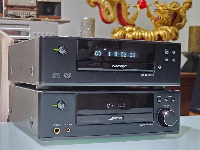 - BOSE DVA-18 เครื่องเล่น DVD/CD Player รุ่นใหญ่สุด ออกแบบ และผลิตมาสำหรับเข้าคู่เล่นร่วมกับ BOSE RA-18 Stereo Receiver โดยเฉพาะ เล่น และอ่านแผ่น DVD และ CD ทุกฟอร์แมทได้อย่างรวดเร็ว แม่นยำ ตัวเครื่องกว้าง 25 สูง 9 ลึก 27 ซม. น้ำหนักประมาณ 3 กก.