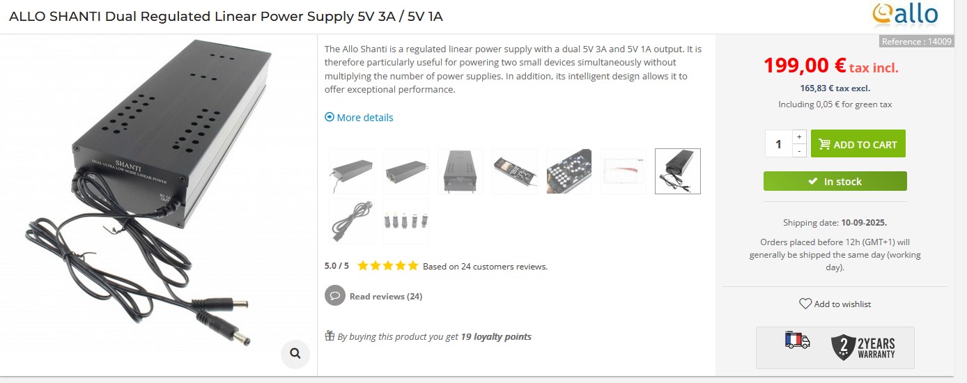ALLO SHANTI Dual Regulated Linear Power Supply 5V 3A / 5V 1A สภาพเดิมสวยมาก ใช้งานเหมือนใหม่ มือเดียวจากห้าง ออกใหม่ 6000.-กว่า*199 euro*เจ้าของส่งมาขายหน้าร้านถูกๆเพียง 2900.-เท่านั้น