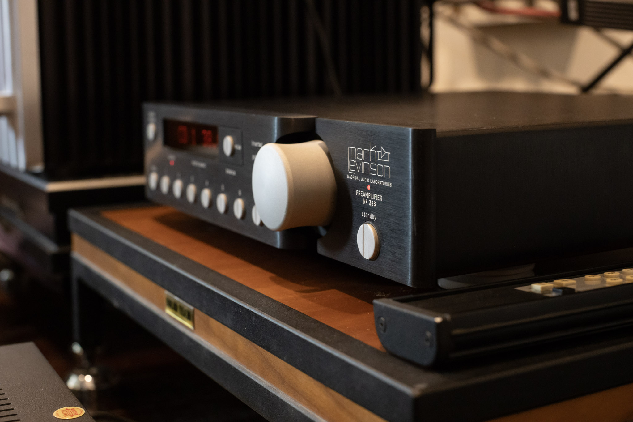 ปรีแอมป์ Mark Levinson no. 38s อดีตตัวท็อปก่อนถูกแทนที่ด้วยรุ่น no. 380s ในเวลาต่อมา ให้น้ำเสียงอิ่มจะแจ้งแต่ละเมียดละไม แสดงรายละเอียดต่างๆ ออกมาได้อย่างชัดเจน โทนัลบาลานซ์สมดุลย์ดีมาก แยกแยะเสียงสูงกลางต่ำจากกันได้ดี รูปวงเวทีโอ่อ่า มีบรรยากาศเสียงและสุ้มเสียงแบบเครื่องเสียงไฮเอนด์จริงๆ ติด Stereophile class A