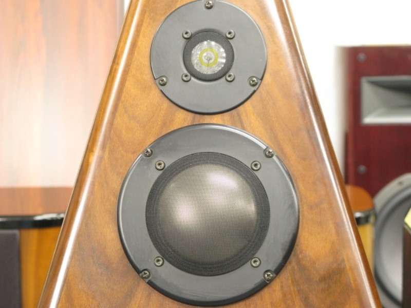 GENESIS Model V ที่สุดลำโพงตั้งพื้น 3 ทาง 7 ดอกเสียงมหาเทพ ดีไซน์สวยโดดเด่นที่สุด ด้วยตู้ด้านบนออกแบบให้เป็นทรงแหลมคล้าย Pyramid สามารถรองรับพลังเสียงได้มากถึง 500 วัตต์ต่อข้าง ความไวต่อเสียง Sensitivity 90dB จึงเล่นร่วมกับเครื่องเสียงทุกประเภท รวมทั้งแอมป์หลอดวัตต์ต่ำ และ Class A ได้อย่างยอดเยี่ยม ตัวตู้มีขนาดใหญ่โตมโหฬาร และหนักมาก ๆ โดยกว้าง 28 สูง 112 ลึก 56 ซม. น้ำหนักประมาณ 64 กก.ต่อตู้
