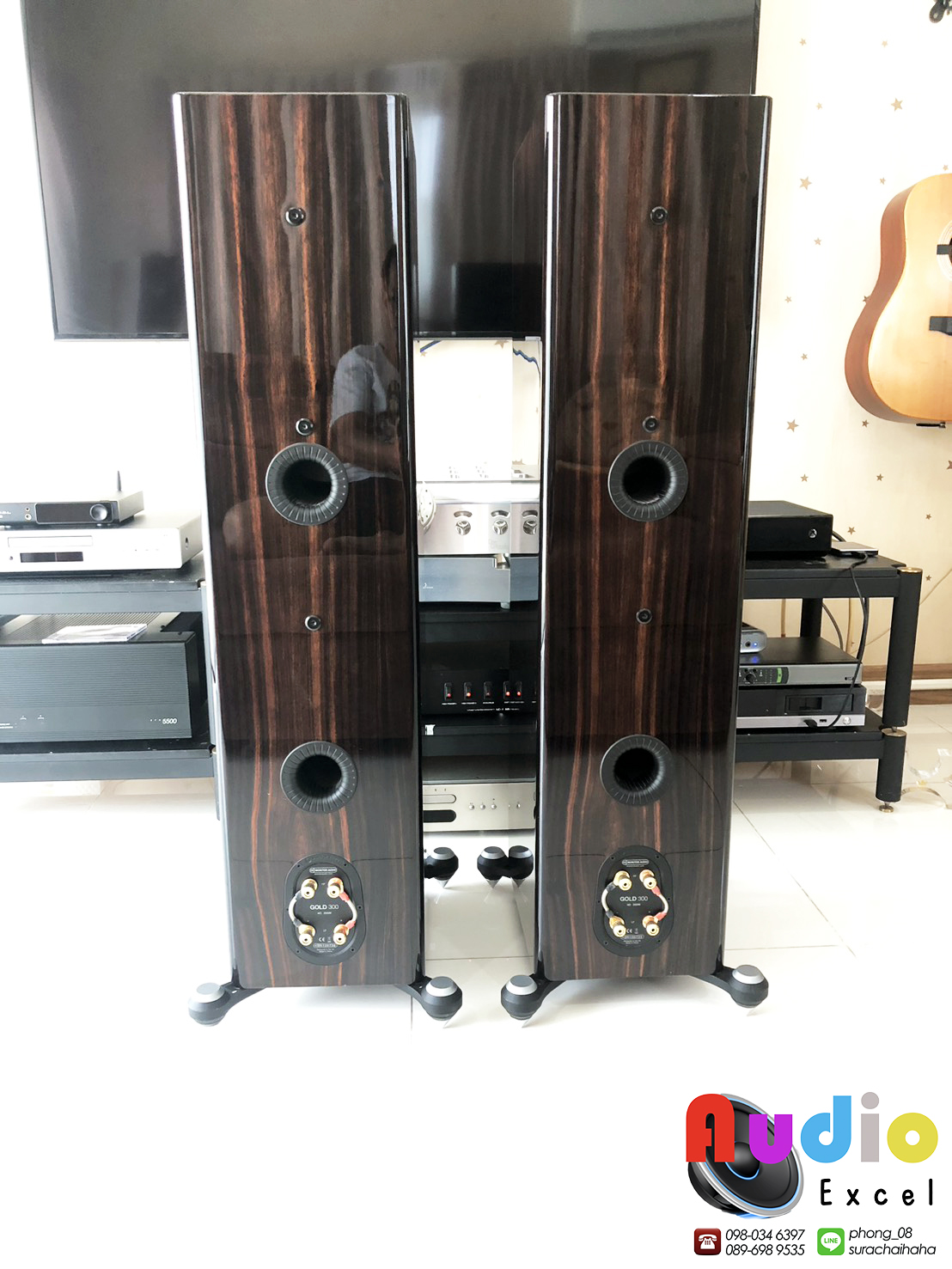 - ลำโพงตั้งพื้นรุ่นใหญ่สุดจาก Gold Series 5G แบรนด์ดังจากอังกฤษ ระบบเสียงแบบ 3 ทางออกแบบมาสำหรับผู้ที่ต้องการความสมบูรณ์ทั้งทางด้านเสียงและรูปลักษณ์ พร้อมเทคโนโลยีระดับสูงที่ถ่ายทอดจาก Platinum ใช้ Tweeter ขนาด 1" แบบ C-CAM Ribbon Tweeter ให้เสียงสูงทอดตัวไกล ละเอียด และไม่บาดหู C-CAM Midrange Driver ขนาด 2.5" ถ่ายทอดเสียงกลางชัดเจนและโปร่งใส Woofer ขนาด 8" แบบ C-CAM Bass Drivers เบสขนาดใหญ่คู่ ให้แรงปะทะดี ลงได้ลึกถึง 30Hz โครงสร้างตู้แข็งแรง สวยงาม ใช้วัสดุ MDF หนาและลดแรงสั่นสะเทือน เคลือบผิวด้วย Piano Ebony ให้ความหรูหรา ตู้แบบ HiVe II Port ออกแบบช่องระบายอากาศให้ลดเสียงรบกวนและเพิ่มความเร็วการตอบสนองของเบส