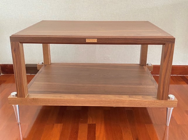 ชั้นรุ่นนี้ทำจากไม้วอลนัท ออกแบบได้สวยงามและดูคลาสสิคมาก ขาด้านล่างใช้สไปค์อลูมิเนียมขนาดใหญ่ วางในห้องจะดูสวยงาม โดดเด่นสดุดตา สภาพชั้นสวยมาก ริ้วรอยแทบมองไม่เห็น