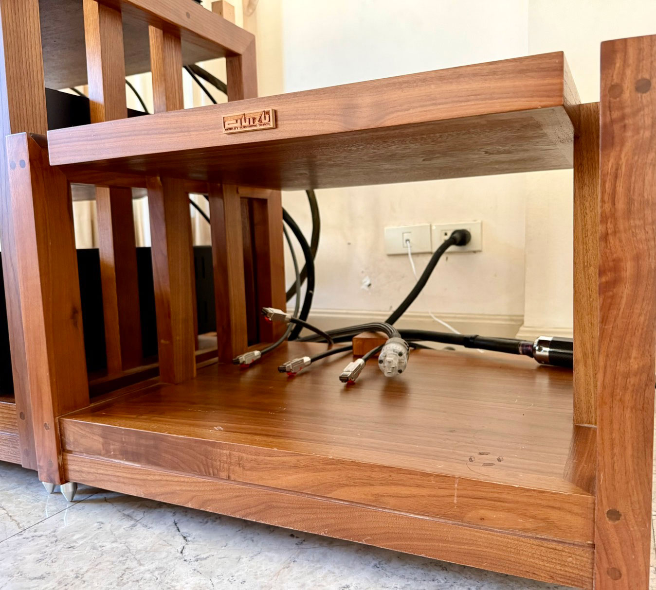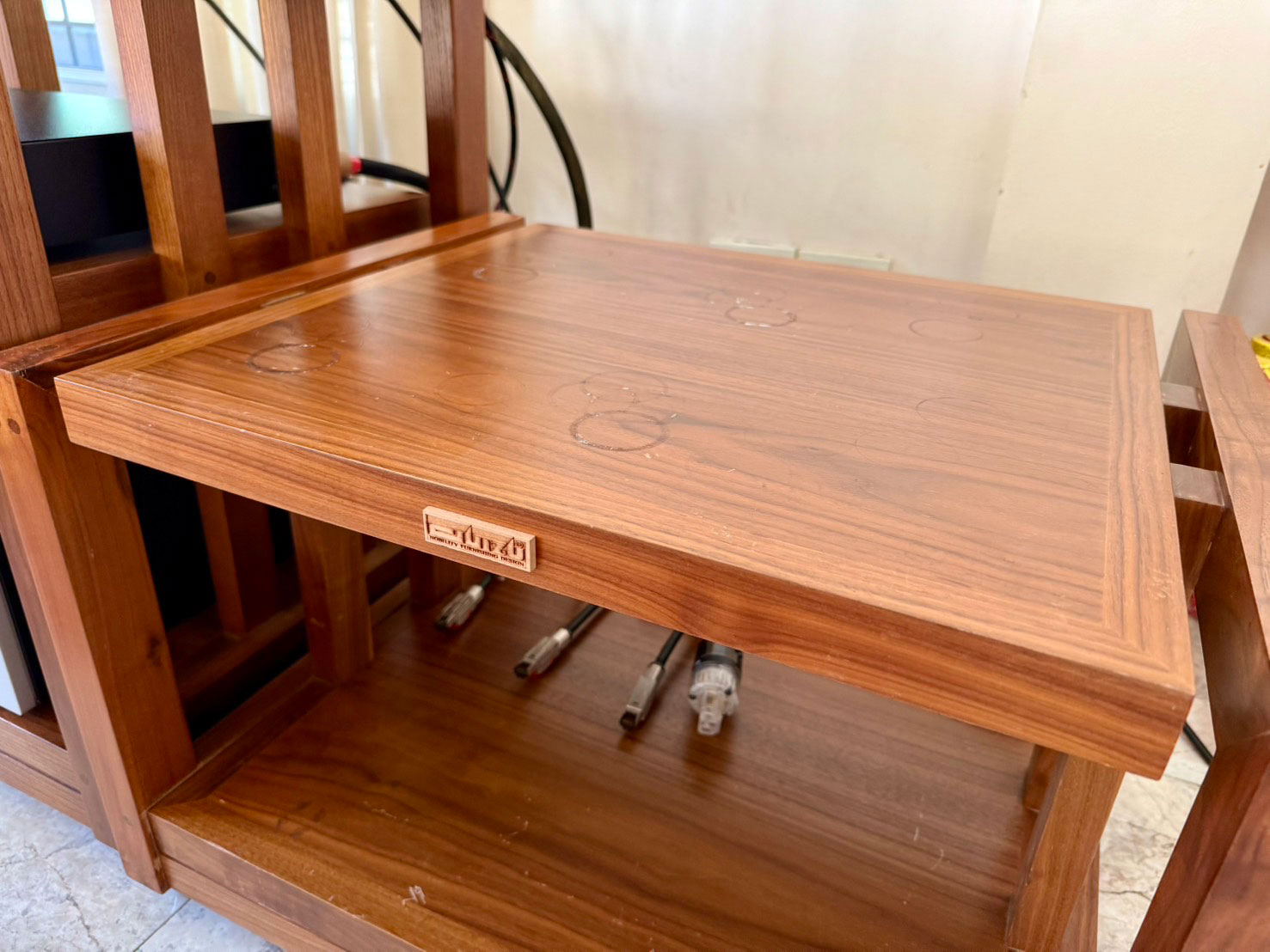 ชั้นวางเครื่องเสียงไม้วอลนัท สภาพสวย ตั้งวางเครื่องอย่างเดียว ไม่เคยชนหรือกระแทก มีตำหนิแผ่นไม่ด้านบนเกิดจากขายางใต้เครื่องเสื่อมจึงทิ้งคราบเอาไว้