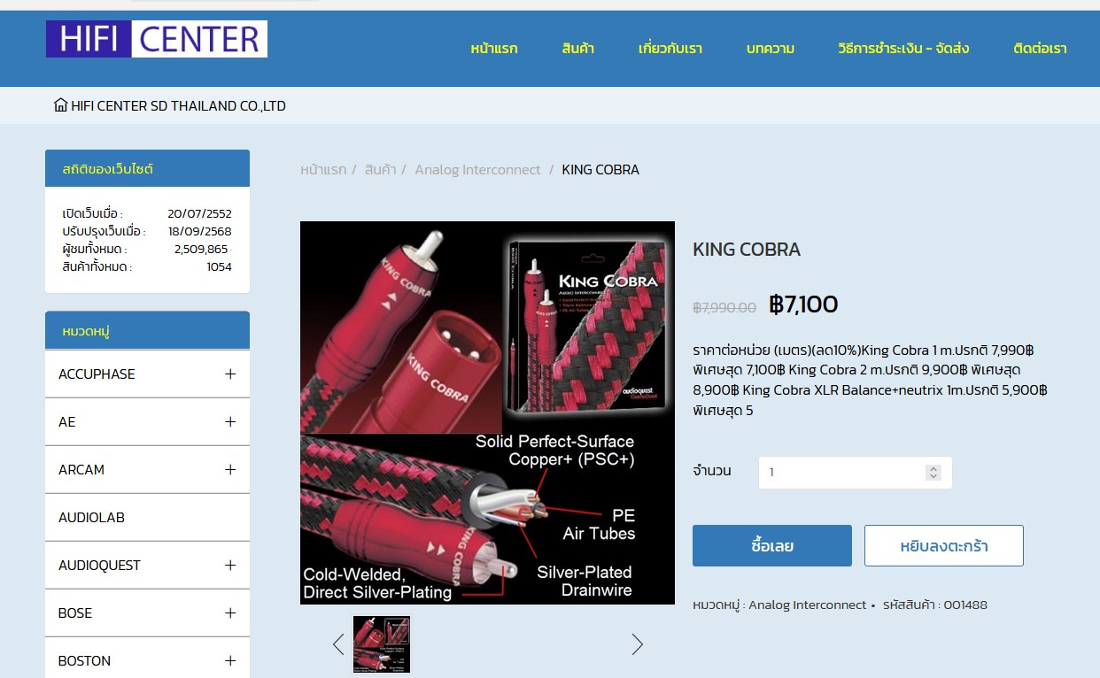 audioquest king cobra สุดยอดสาย RCA BRANDดังจากอเมริกา ยาว 1M X 2 สภาพเดิมสวยมากเจ้าของซื้อมาไม่ได้ใช้*เก่าเก็บ*สวยมากเกือบเหมือนใหม่ ออกใหม่ 7990.-เจ้าของส่งมาฝากขายหน้าร้านถูกๆเพียงชุดละ 2900.-เท่านั้น