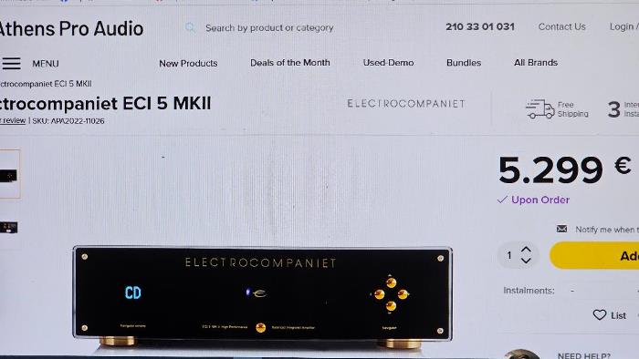ELECTROCOMPANIET ECI-5 Mk II ผลงานการผลิตในประเทศนอรเวย์ หนึ่งในประเทศที่ได้รับการยกย่องว่า ผลิตลำโพง และเครื่องเสียงคุณภาพดีที่สุดในโลก ใช้ไฟ 220 V ด้านหลังตัวเครื่องมีการติดตั้งช่องต่อสายไฟแบบ IEC เพื่อเพิ่มทางเลือกไปใช้สายไฟฟ้า AC Power cord ที่ดีกว่าสายไฟฟ้าแบบธรรมดาที่ติดมากับตัวเครื่อง อันจะได้มาซึ่งประสิทธิผลที่เหนือกว่าได้ ที่สำคัญยังมีช่องต่อเชื่อมสัญญาณแบบ Balance(XLR) อีกระดับคุณภาพเสียงที่เหนือกว่า RCA ทั่วไปมากถึง 3 ชุด พร้อมช่อง Pre Out สำหรับต่อเชี่อมกับ Power Amplifier เพื่อทำหน้าที่เป็น Preamplifier ได้อย่างยอดเยี่ยม ซึ่งสิ่งเหล่านี้จะมีอยู่แต่ในเครื่องเสียงตัวเครื่องระดับ Hi-End ราคาแพงสุดโต่งเท่านั้น สภาพตัวเครื่องยังสวยงามมาก เหมือนอย่างกับเป็นของใหม่ที่เพิ่งแกะออกมาจากกล่อง มี Remote Control ตรงรุ่น คู่มือใช้งาน และกล่องบรรจุของแท้ให้ครบ
