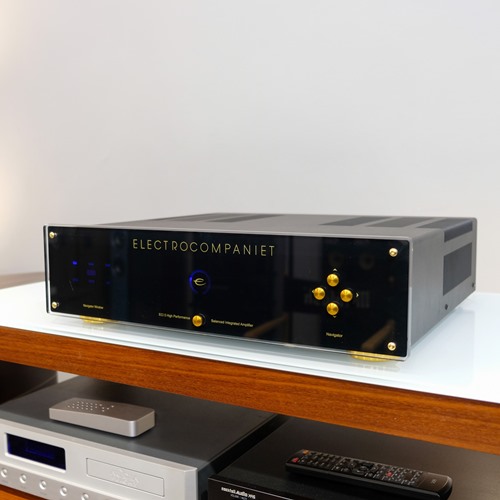 1. ELECTROCOMPANIET ECI-5 Mk II Stereo Integrated Amplifier รุ่นใหญ่ระดับ Hi-End ชั้นนำของโลกจาก Norway ผลงาน Masterpiece ที่มีความสวยงามระดับ State of The Art ที่โดดเด่นทางด้านคุณภาพเสียงอันนุ่ม เนียน หวาน กระจ่างใสอย่างไม่เป็นสองรองใคร ที่สำคัญตัวเครื่องด้านหน้ายังมีการติดตั้งแผ่นกระจกหนา 50 มิลลิเมตรประกบเข้าไปได้อย่างปราณีตสวยงามมาก จนได้รับการยกย่องจากนักวิจารณ์เครื่องเสียงทั่วโลก ให้เป็น McINTOSH แห่งยุโรป ไม่เพียงเท่านั้น ยังมีปุ่มควบคุมการทำงานเป็นสีทองสวยงามหรูหรามากเพียง 5 ปุ่มเท่านั้น โดดเด่นด้วยแสงไฟสีฟ้าแสดงระดับความดังของเสียง เลื่อนขึ้นลงเป็นวงกลมรอบสัญญลักษณ์ ELECTROCOMPANIET พร้อมด้วย Navigator Window เลือกฟังค์ชั่นแหล่งเสียงที่ต่อเชื่อมเป็นตัวอักษรสีฟ้าเช่นเดียวกัน ให้พลังเสียงได้สูงสุดถึง 200 วัตต์ต่อข้าง สามารถต่อเชื่อมกับแหล่งเสียงหลัก ๆ ได้ทั้ง Tuner, CD, Tape, Aux ตัวเครื่องมีขนาดใหญ่โตกว่าเครื่องเสียงทั่วไปเป็นอย่างมาก กว้าง 49 สูง 14 ลึก 41 ซม. น้ำหนักประมาณ 20 กก.