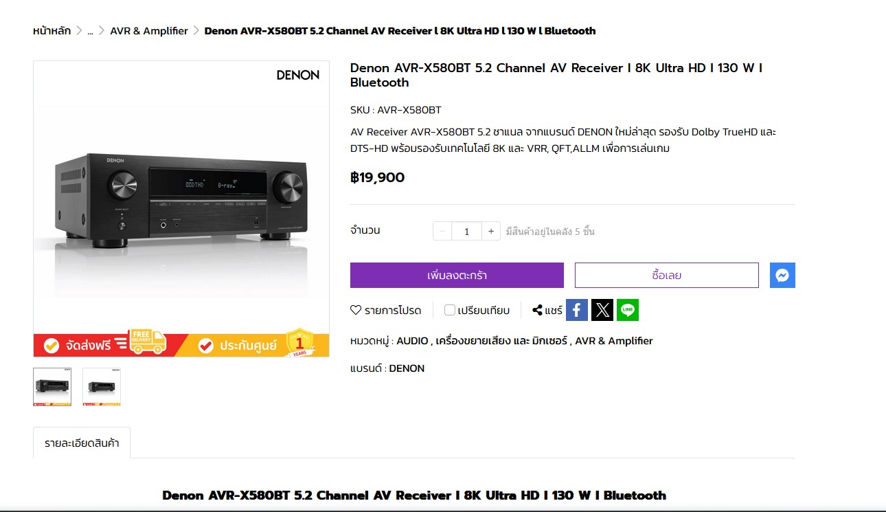 DENON AVR-X580BT รุ่นใหม่ สเปค 8K สภาพเดิมสวยมากเกือบเหมือนใหม่ + รีโมท ดูหนัง + ฟังเพลงระบบ 5.2 ใช้งานปกติทุกระบบ บ้านเรา ออกใหม่ 26000.-เจ้าของส่งมาฝากขายหน้าร้านถุกที่สุดเพียง 12900.-เท่านั้น
