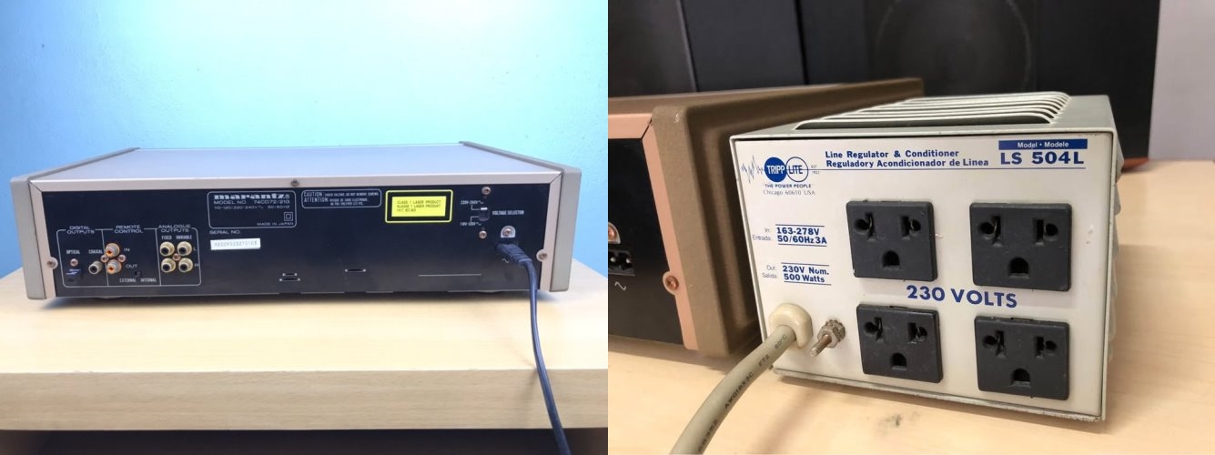 1. MARANTZ CD-72 Mk II Audiophile CD Player ระบบหัวเหวี่ยงรุ่นใหญ่สีทองแชมเปญหรูหรามากคุณค่า ภายในตัวเครื่องคัดสรรมาแต่อุปกรณ์ ชิ้นส่วน วัสดุ และวงจร Audiograde ระดับ Premium รวมทั้ง ภาค D/A ใช้ชิพ TDA1541A มีมงกุฎถึง 2 ตัว, 16 bit linear, 4 x oversampling และ Frequency response: 4Hz–20kHz –0.5dB. Dynamic range: 96dB. S/N ratio: 96dB. Total harmonic distortion: 0.003% (1kHz). D/A conversion: 16-bit 4x oversampling สามารถเล่น และอ่านแผ่น CD ทุกฟอร์แมทได้อย่างรวดเร็วแม่นยำ ตัวเครื่องมีขนาดใหญ่ และหนักพอสมควร กว้าง 46 สูง 13 ลึก 30 ซม.น้ำหนักประมาณ 9 กก. มาพร้อม TRIPP LITE IS-504L Regulator & Conditioner Line Stabilizer สุดยอดเครื่องควบคุมกระแสไฟให้เดินเรียบเต็มประสทธิภาพ ไม่ให้ไฟตก ไฟเกิน หรือไฟกระชาก อันจะช่วยให้ได้มาซึ่งคุณภาพเสียงที่ยอดเยี่ยมขึ้นอีกระดับ