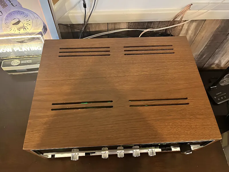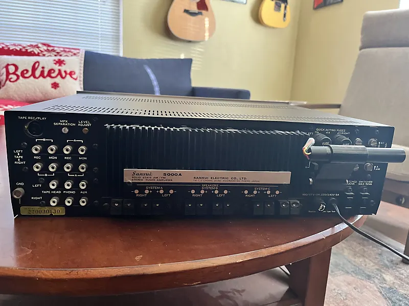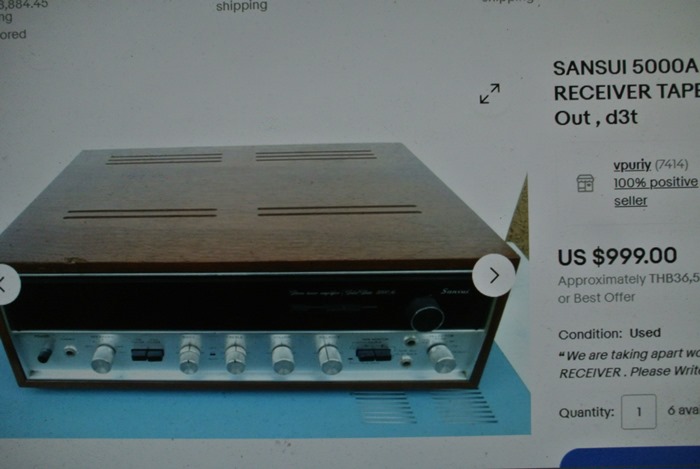 SANSUI 5000A ผลิต Japan ใช้ไฟ 220V ตัวเครื่อง กล่องไม้ธรรมชาติ ยังอยู่ในสภาพที่สวยงามมาก ไฟทุกดวง รวมทั้งไฟ Stereo ยังติดสว่าง ปุ่มควบคุมการทำงานทั้งหมด ยังใช้งานได้เป็นปกติ