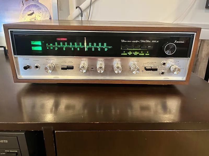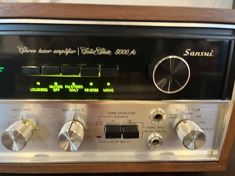 1. SANSUI 5000A 2 Channel Stereo Receiver รุ่นใหญ่สุด Top of The Line ในตระกูล A Series โดดเด่นด้วยสุดยอดวงจร Vario-Matrix Circuit ให้พลังเสียง 55 วัตต์ต่อข้าง พร้อมกำลังสำรองมากมาย นอกจากจะรับวิทยุบ้านเรา FM 87-108MHz ได้อย่างคมชัดทุกสถานีแล้ว ยังสามารถต่อลำโพงได้มากถึง 3 คู่ และแหล่งเสียงหลัก ๆ ได้อย่างครบครันทั้ง CD, Phono, Tape, Aux พร้อมปุ่ม Loudness เพื่อยกระดับเสียงให้ดีขึ้นไปอีกระดับหนึ่ง ตัวเครื่องมีขนาดใหญ่ และหนักพอสมควร กว้าง 47 สูง 17 ลึก 40 ซม. น้ำหนักประมาณ 14 กก.