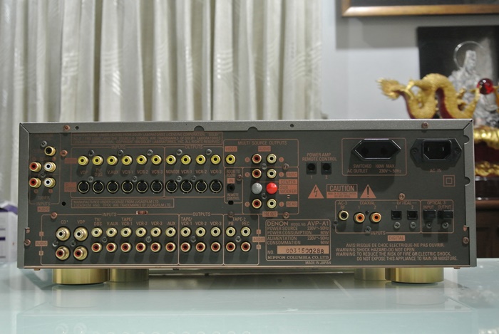 1. DENON AVP-A1 Precision Audio Component Preamplifier รุ่นสูงสุด และใหญ่ที่สุด Top of The Line จนต้องมีรุ่นใหม่ที่เพิ่มอักษรต่าง ๆ ต่อท้ายออกติดตามมาอีกหลายรุ่น ได้รับ THX Ultra Certified อย่างเป็นทางการอีกด้วย ที่สำคัญยังได้ติดตั้งสุดยอดวงจรทั้ง 192kHz. 24bit D.A. Converter และ SHARC Dual 32-bit Floating Point DSP's ไม่เพียงเท่านั้นยังติดตั้งวงจร 24-bit AL20 Alpha Processing อันเป็นเอกสิทธิ์เทคโนโลยี่ที่สร้างชื่อเสียงให้กับ DENON เป็นอย่างมาก โดยเฉพาะวงจรภาค Audio สำหรับใช้ฟังเพลงยอดเยี่ยมมาก แม้แต่เครื่องเสียง Stereo Integrated Amplifier ในระดับราคาครึ่ง 100,000 บาท ยังไม่อาจเทียบเคียงด้านคุณภาพเสียงได้ พร้อมด้วย Pure Direct Mode for Pure Analogue Throughput (Digital Circuits switched off) และ 96 kHz, 24 bit A/D Converter สามารถต่อเชื่อมแหล่งภาพ และเสียงหลัก ๆ ได้อย่างมากมายไม่ว่าจะเป็น DVD, CD, Tuner, Tape, Phono, TV, Video, VCR รวมทั้งเครื่องเสียง/ภาพร่วมสมัยอย่าง iPod/iPhone อีกด้วย