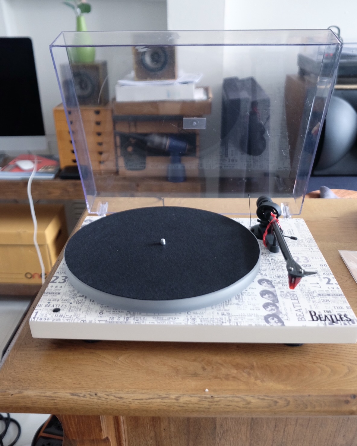 เครื่องเล่นแผ่นเสียง Project Debut Carbon DC SB ลาย The Beatles 1964 ผลิตแค่ 2500 ตัว เล่นได้ 2 สปีดสภาพดีมาพร้อมกล่องและคู่มืออุปกรณ์ครบเครื่องซื้อปี 2021 มีตำหนิที่ฝาครอบเล็กน้อย