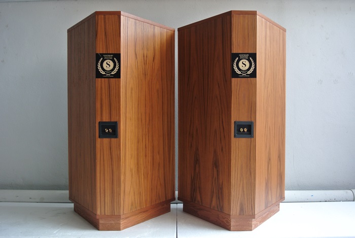 2. CELESTION Legendary Signature ลำโพง Full Range ระดับตำนานรุ่นใหญ่สุด Top of The Line ในตระกูล Signature Series ของผู้นำลำโพงอันดับ 1 จากดินแดนผู้ดีประเทศอังกฤษ ผลงานชิ้น Masterpiece ที่มีรูปแบบการดีไซน์สวยงาม และสุดแสนจะคลาสสิคในระดับ State of The Art ด้วยตัวตู้ลำโพงทรง 6 เหลี่ยมขนาดใหญ่ ที่ผลิตจากไม้ธรรมชาติสี Walnut ลวดลายสวยงาม หน้ากากลำโพงผลิตจากผ้า Linen สีทอง ที่นิยมใช้กันในลำโพง Vintage ระดับ Hi-End ขอบข้างตู้ลำโพงด้านหน้าผสมผสานด้วยผ้า Linen สีทองชนิดเดียวกันกับหน้ากากได้อย่างลงตัว เพิ่มความสวยงามคลาสสิคได้เป็นอย่างมาก ด้านหน้าตู้ลำโพงส่วนล่าง สอดแทรกด้วยเส้นไม้ธรรมชาติ 3 เส้นทั้งในแนวนอน และแนวตั้งคล้ายอักษร TT เพิ่มความโดดเด่น และคุณค่าความสวยงามได้เป็นอย่างมาก แต่ที่สำคัญสุดก็คือ ด้านหน้าตู้ลำโพงส่วนบนติดตั้งดอกลำโพง CELESTION Full Range Twin Cone รุ่น PS-12 TC-1972 แบบ Low frequency cone and high temperature voice-coil assembly coaxially mounted with a wide-dispersion dome radiator ขนาดใหญ่สุด 12 นิ้ว ที่ได้รับการยกย่องจากนักวิจารณ์เครื่องเสียงชั้นนำของโลกให้เป็นหนึ่งในดอกลำโพง Full Range ที่ดีที่สุดในโลก ด้วยคุณภาพ และมิติเสียงอันสุดยอด เหนือคำบรรยายใด ๆ ที่จะนำมาเปรียบเทียบได้ สมบูรณ์ครบเครื่องทั้งหวาน เนียน นุ่ม สดใส ชัดเจน ลุ่มลึก หนักแน่น ให้ความกระจ่างแจ้งของเสียงร้อง และความมีตัวตนของดนตรี และบรรยากาศรอบข้างได้อย่างสมจริงเป็นธรรมชาติสุด ๆ ตรงตามแหล่งเสียงที่บันทึกมาอย่างไม่ขาดตกบกพร่อง ปราศจากสิ่งเจือปนใด ๆ ชนิดที่หาได้ยากมากจากลำโพงคู่อื่น สามารถรองรับพลังเสียงได้มากถึง 100 วัตต์ต่อข้าง ด้วยความไวต่อเสียง Sensitivity สูงถึง 98 dB จึงสามารถนำไปใช้ร่วมกับเครื่องเสียงทุกประเภท รวมทั้งแอมป์หลอดวัตต์ต่ำ และ Class A ได้อย่างยอดเยี่ยม ตัวตู้มีขนาดใหญ่โตมโหฬาร และหนักมาก ๆ โดยกว้าง 64 สูง 107 ลึก 44 ซม. น้ำหนักประมาณ 30 กก.ต่อตู้