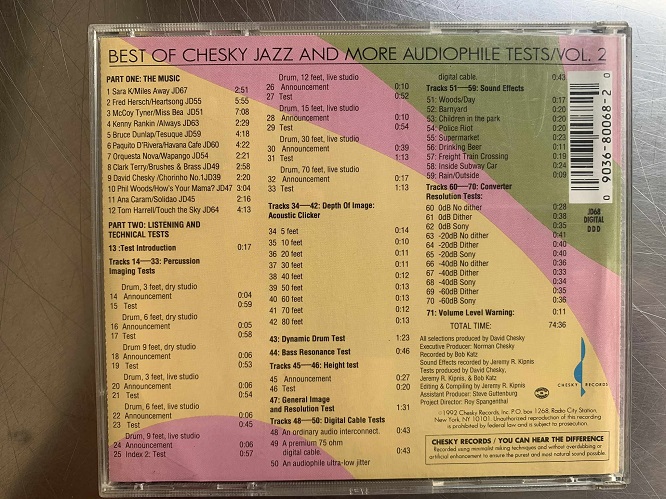 1.Best of Chesky /Jazz and More/audiophile tests Vol.2/แผ่นรวมเพลงจากค่าย Chesky  เพลงเด่น เพลงเพราะ เพลงดังครบทุกเพลงครับ/บันทึกเสียงยอดเยี่ยม สมเป็นค่ายออดิโอไฟล์(ตามงานเครื่องเสียงขายกัน 400+ ) ผมขาย 270.-