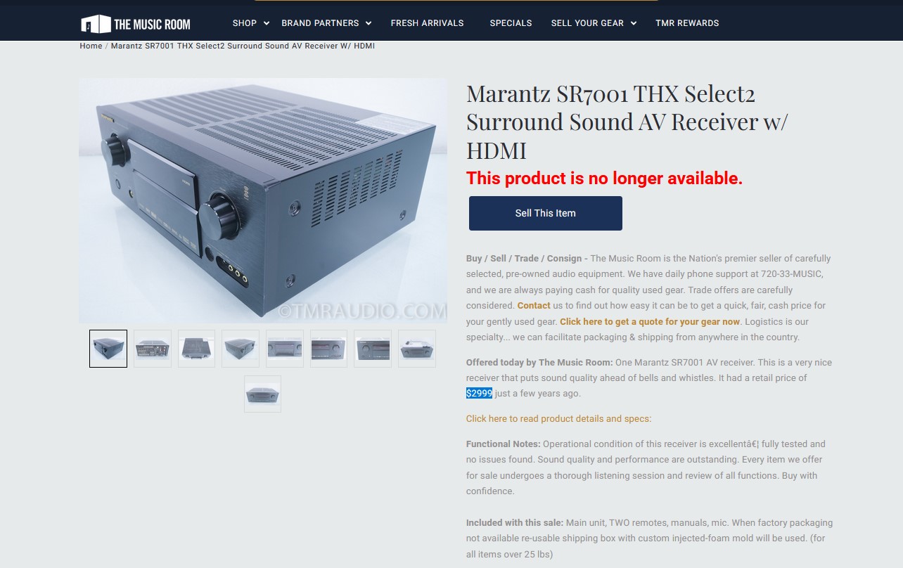 MARANTZ SR 7001 + รีโมทคอนโทรล หน้าปัด 2ชั้น รองรับ HDMI การประมวลผลสัญญาณดิจิทัล 32 บิตที่เป็นนวัตกรรมใหม่ ได้รางวัลมากมาย 5ดาวจากทั่วโลก สภาพเดิมสวยมากเกือบเหมือนใหม่ รุ่นใหญ่ ตัวเครื่องขนาดใหญ่สุด วัตต์แท้ 110W RMS/CH 8 OHM ต่อลำโพงมากสุดถึง 11ตัว งาน HI END AUDIO GRADEแท้ทุกชิ้น ดูหนัง + ฟังเพลง เสียงดีสุดยอดระดับ 5ดาว ใช้งานเหมือนใหม่ทุกระบบ*เครื่อง JAPAN SPEC 100v* ต้องผ่านหม้อแปลง ออกใหม่ 2999 USD *บ้านเราเกือบแสนบาท* เจ้าของส่งมาฝากขายหน้าร้านถูกๆเพียง 6900.-เท่านั้น