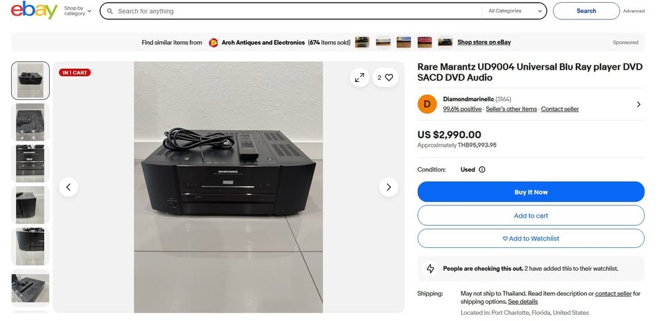 MARANTZ UD9004 MADE IN JAPAN ด้วยสุดยอดอลังการงานสร้างที่MARANTZตั้งใจคิดค้นให้เป็นTOP OF THE LINE วัสดุทุกชิ้นรวมถึงน๊อตทุกตัวตั้งแต่ชิ้นแรกจนชิ้นสุดท้ายไม่มีรุ่นไหนกล้าสร้างแบบไม่จำกัดงบการผลิต สเปคแค่เอาไปฟังเพลงอย่างเดียวเสียงดีสุดยอด 5ดาวระดับโลกแท้เพราะติดตั้งชุดถอดรหัสเสียงเทียบเท่าเครื่องเล่นCDระดับเกิน100000.- 100% (UD9004 and A1UDCI share 5 AKM 32 bit DACs: Currently no other than these two in the world have 2 channels per 32 bit DAC in 7.1 RCA configuration)เครื่องสวยมากเกือบเหมือนใหม่ + รีโมทคอนโทรล 220Vยกกล่อง เอาไปเสียบปลั๊กใช้ได้เลย ออกใหม่ *5000 ปอนด์*+-200000.-เจ้าของเอามาใช้ฟังเพลงอย่างเดียว ส่งมาฝากขายหน้าร้านถูกที่สุดเพียง49900.-เท่านั้น