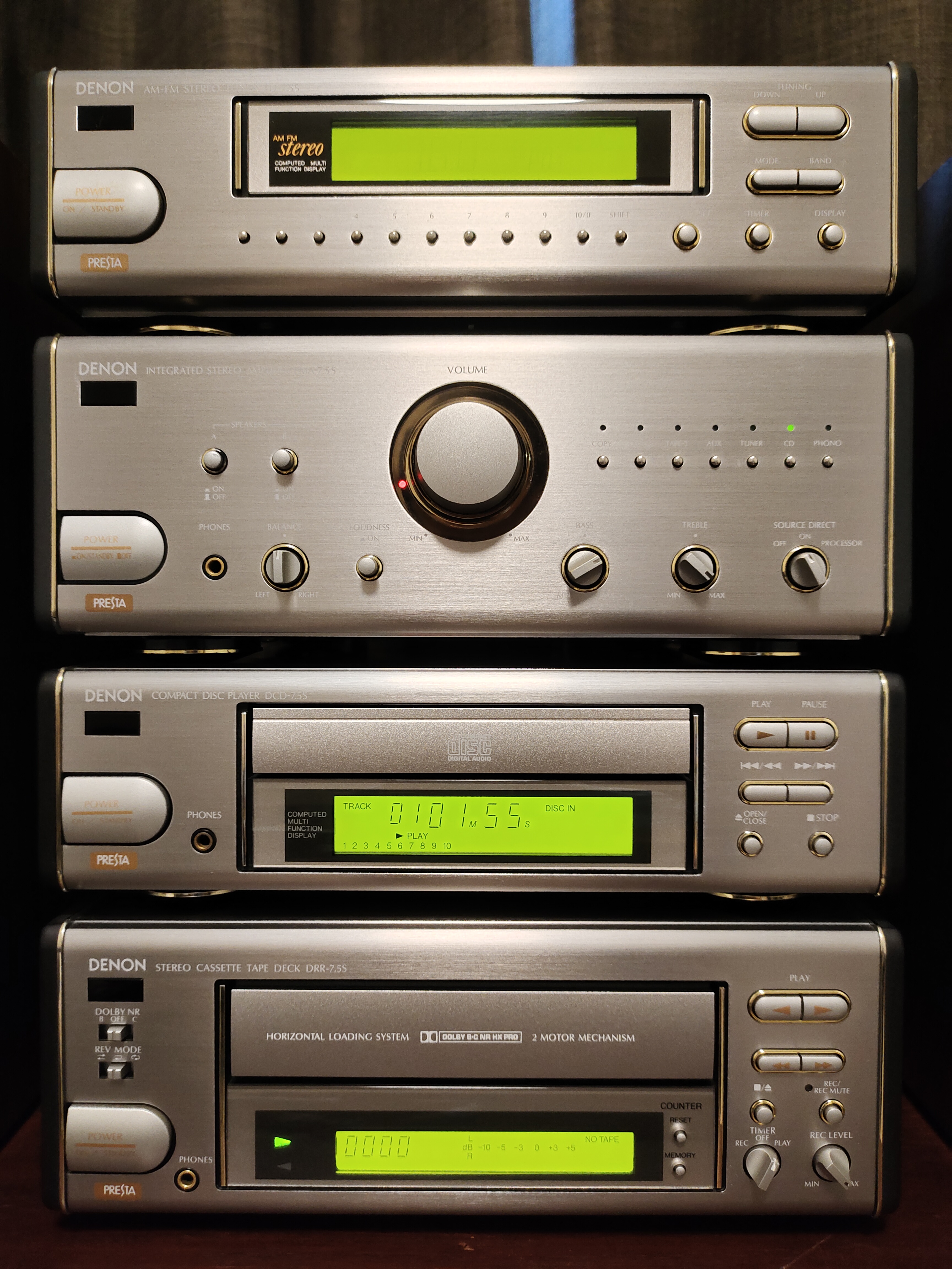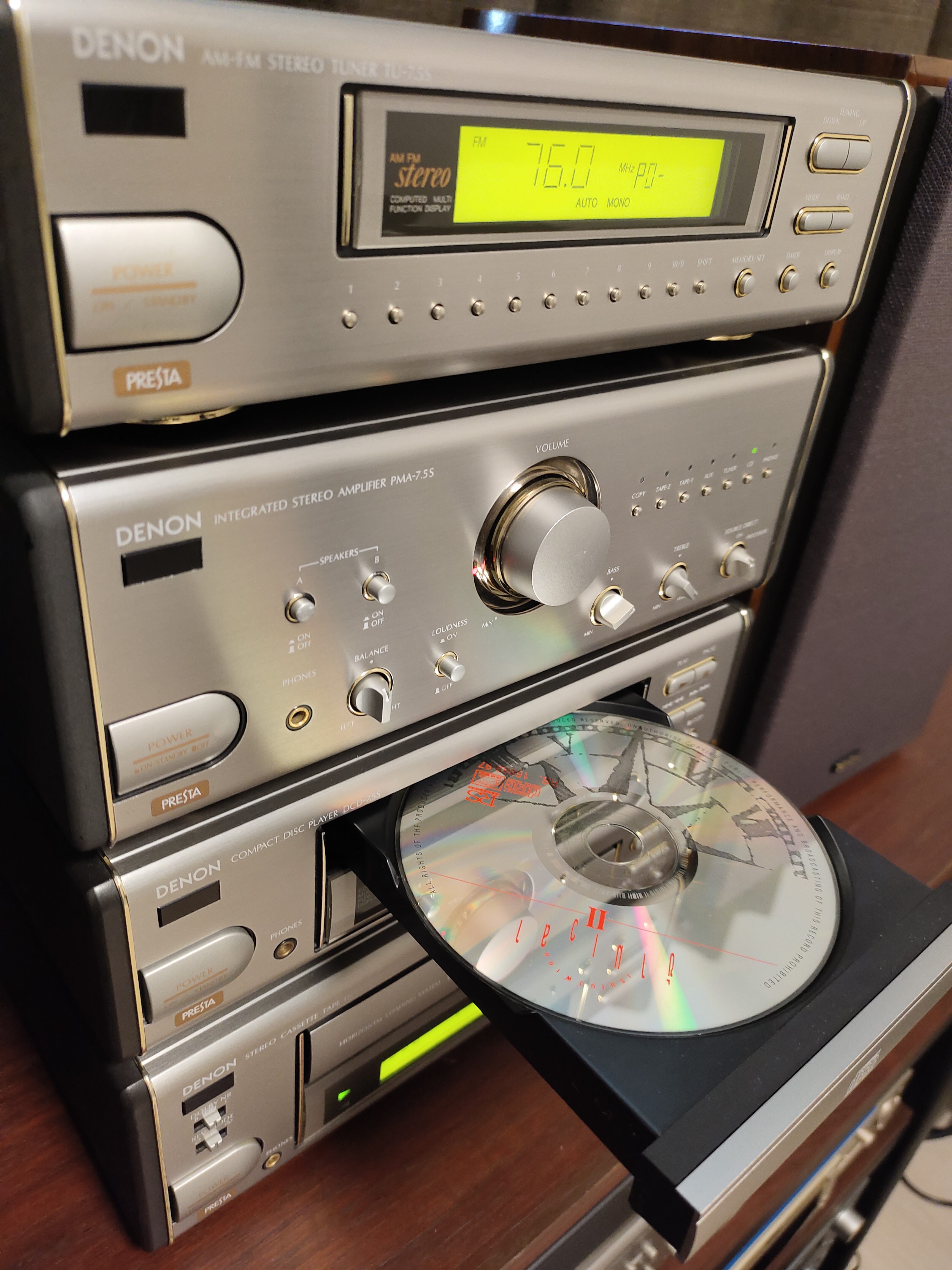 7.5S PRESTA - สภาพสวย หน้าจอชัด อ่านแผ่นดีมาก เลือกเเทรคไว ใช้หัวอ่าน kss 240a ทนทาน หาง่าย (หัวเดิมโรงงาน) ชิฟเสียง DAC Burr-Brown BB PCM56P Japan จำนวน 2 ตัว เสียงดีมาก Up Grade สายไฟของ DENON เกรดญี่ปุ่น เส้นใหญ่ขึ้นกว่าเดิม ไห้เสียงอิ่ม รายละเอียดเสียงดีขึ้น 20-25% ไห้ฟรีๆ Made In Japan