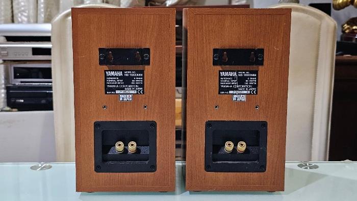 YAMAHA NS-100M ลำโพงระดับโลกรุ่นพิมพ์นิยมแบบ Bookshelve วางหิ้ง 3 ทางระดับ Natural Sound Studio Monitor มีขนาดใหญ่ และหนักกว่าลำโพงทั่วไปอย่างมาก ติดตั้ง Woofer ขนาด 8 นิ้ว กรวยกระดาษ เอกสิทธิ์เทคโนโลยีของ Yamaha ที่สามารถคิดค้นวัตถุดิบที่ให้น้ำเสียงแที่แม่นยำ ตอบสนองความพี่ได้ผิดเพี้ยนน้อยที่สุด โดย Voice Coil ใช้ทองแดงแบบที่มีลักษณะแบน เพื่อให้เกิดความร้อนที่ตัวว๊อยซ์คอยล์ให้ต่ำที่สุด และ Midrange ขนาด 2.5 นิ้วกรวยแบบ Dome โดยด้านหลัง Diaframe ใช้วัสดุ Rockwool เพื่อซับเสียงที่มารบกวนการฟังที่เกิดจากภายในตัวตู้ได้อย่างยอดเยี่ยม รวมทั้ง Tweeter ขนาด 1.5 นิ้ว ใช้ Aluminum Voice Coil ที่มีน้ำหนักเบา และตอบสนองความถี่ได้ดีเยี่ยม สามารถรองรับพลังเสียง 100 วัตต์เต็มต่อข้าง ความไวต่อเสียง 90dB เล่นร่วมกับเครื่องเสียงได้ทุกประเภท รวมทั้งแอมป์หลอดวัตต์ต่ำได้อย่างยอดเยี่ยม