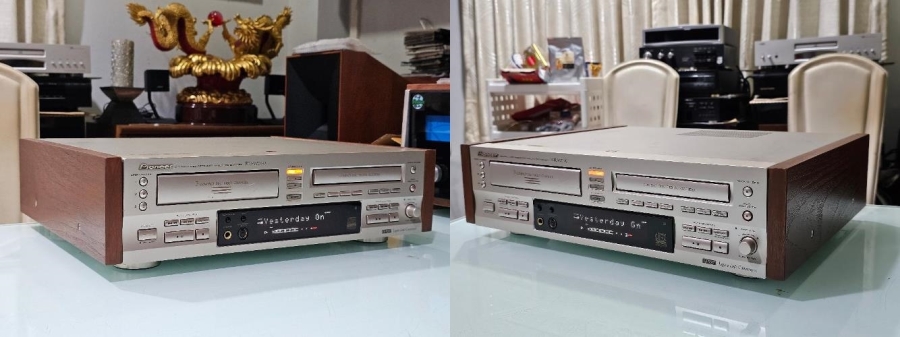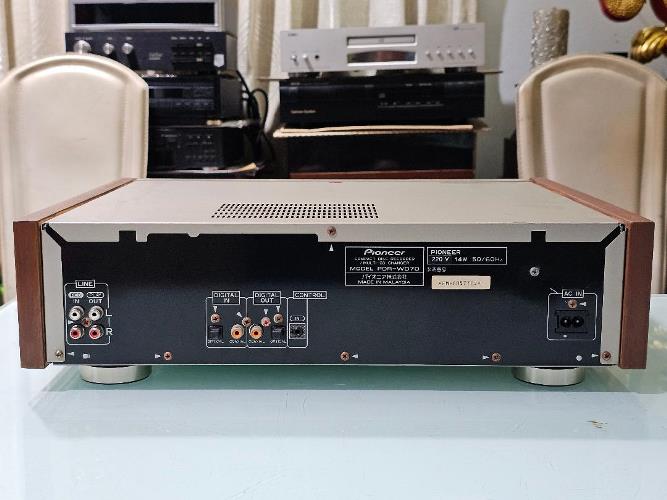 PIONEER PDR-WD70 ผลิต Japan ไม่ใช่ China สำหรับจำหน่ายในประเทศญี่ปุ่นเท่านั้น จึงใช้ไฟฟ้า 100V ที่หาไม่ได้อีกแล้วในปัจจุบัน ช่องต่อสายไฟฟ้าด้านหลังเป็นแบบ IEC ช่วยให้สามารถเลือกใช้สายไฟฟ้าคุณภาพสูงกว่าแบบที่ติดมากับตัวเครื่องมาต่อเชื่อมได้ตามความชื่นชอบ ตัวเครื่อง และข้างไม้ธรรมชาติยังอยู่ในสภาพดีมาก เป็นเครื่องเล่น CD Player แบบ 3 แผ่น พร้อมเครื่องบันทึก แผ่น CD Recorder รุ่นที่หาได้ยากยิ่ง โดยเฉพาะที่มีสภาพสวยสมบูรณ์ระดับนี้ ในราคาถูกเพียงเท่านี้