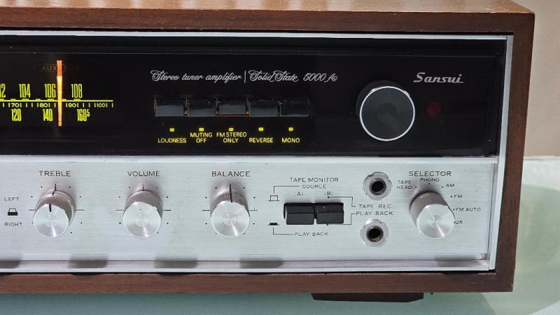 1. SANSUI 5000A 2 Channel Stereo Receiver รุ่นใหญ่สุด Top of The Line ในตระกูล A Series โดดเด่นด้วยสุดยอดวงจร Vario-Matrix Circuit ให้พลังเสียง 55 วัตต์ต่อข้าง พร้อมกำลังสำรองมากมาย นอกจากจะรับวิทยุบ้านเรา FM 87-108MHz ได้อย่างคมชัดทุกสถานีแล้ว ยังสามารถต่อลำโพงได้มากถึง 3 คู่ และแหล่งเสียงหลัก ๆ ได้อย่างครบครันทั้ง CD, Phono, Tape, Aux พร้อมปุ่ม Loudness เพื่อยกระดับเสียงให้ดีขึ้นไปอีกระดับหนึ่ง ตัวเครื่องมีขนาดใหญ่ และหนักพอสมควร กว้าง 47 สูง 17 ลึก 40 ซม. น้ำหนักประมาณ 14 กก.