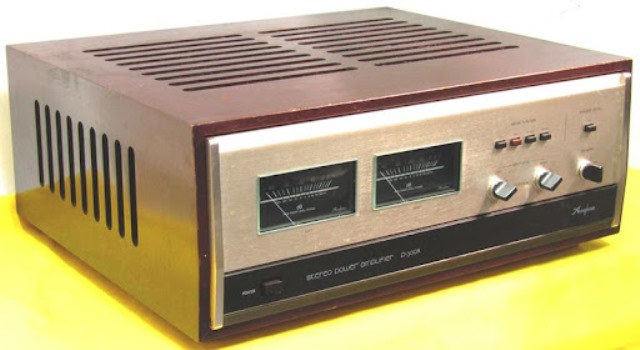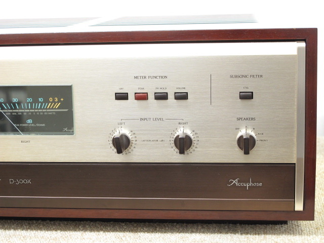 2. ACCUPHASE P-300X Stereo Power Amplifier ระดับ Hi-End รุ่นใหญ่สุด Top of The Line ของตระกูล 300 Series ที่ติดตั้งสุดยอดวงจรชื่อก้องโลกอย่าง 3 parallel push-pull circuits with power MOSFETs ด้วยพลังเสียง 150 วัตต์ต่อข้าง พร้อมพลังสำรองมากมาย รูปแบบการดีไซน์สวยงามหรูหราระดับ State of The Art ด้วยตัวเครื่องสีทองแชมเปญหรูหรามากคุณค่า หุ้มรอบตัวเครื่องด้วยไม้โอ๊คธรรมชาติเคลือบเงาสี Gloss Mahogany ช่วยเพิ่มความคลาสสิคได้เป็นอย่างมาก โดดเด่นด้วยการติดตั้งช่องเข็ม VU Meter ขนาดใหญ่แสดงระดับความดังของเสียงลำโพงซ้าย-ขวา ไม่เพียงเท่านั้น ด้านล่างตัวเครื่องด้านหน้า ยังออกแบบให้มีบานพับเปิด-ปิดขนาดใหญ่สีน้ำตาล เพื่อเก็บปุ่มควบคุมการทำงานทั้งหมดไว้ภายใน ทำให้ตัวเครื่องดูเรียบง่าย ตัวเครื่องใหญ่โตมโหฬาร และหนักมาก ยกคนเดียวไม่ไหว กว้าง 47 สูง 19 ลึก 39 ซม. น้ำหนักประมาณ 25 กก.