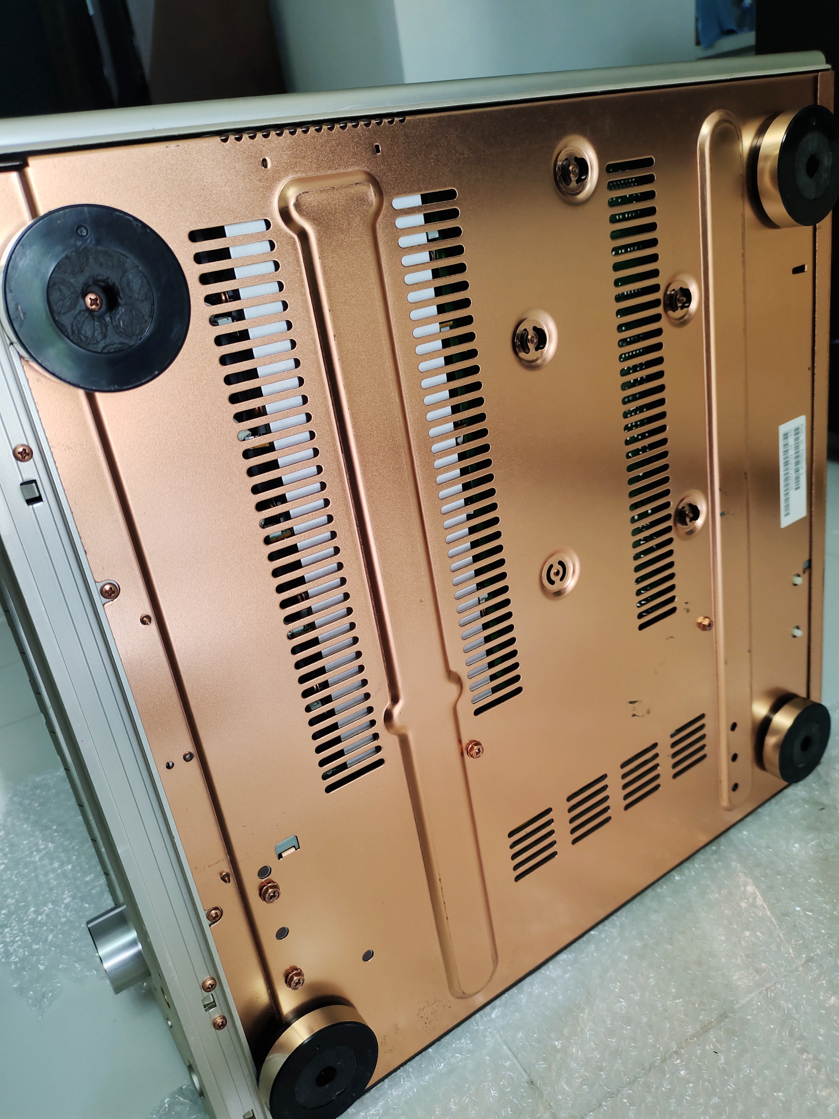 เพาเวอร์แอมป์แยกกำลังสูง Absolute SA Technology" หม้อแปลง Toroidal ขนาดใหญ่ ไห้กำลังขับดีมาก พลังขับ 160W+160W × 7 CH ขนาดภายนอก กว้าง 455x สูง 180x ลึก 485 มม. น้ำหนัก 22.3 กก. มีรีโมท ใช้ไฟ 100v. Made In Japan