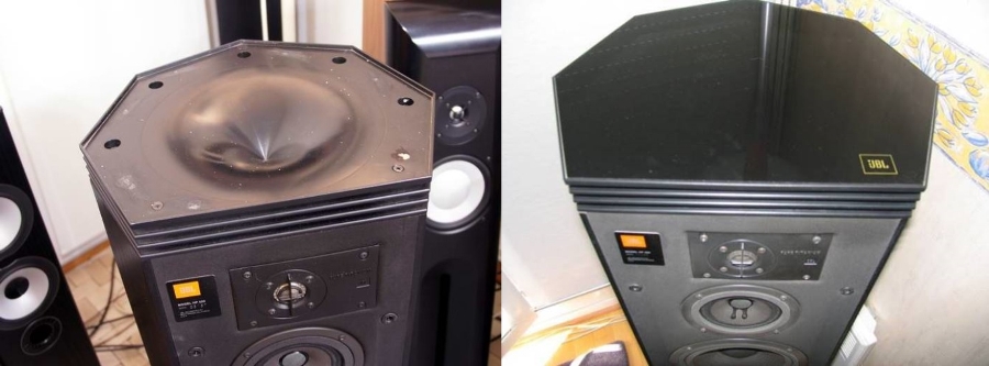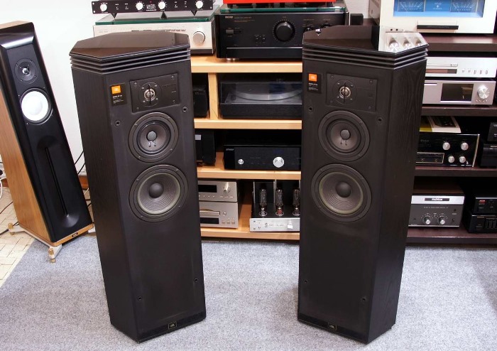 1. JBL HP-520 ลำโพงตั้งพื้น 3 ทาง 5 ดอกที่อาจกล่าวได้ว่า ดีไซน์สวยที่สุด และวิจิตรพิศดารที่สุดของ JBL เพราะติดตั้งดอกลำโพงมากถึง 5 ดอก แบ่งเป็นด้านหน้า 3 ดอก เสียงสูง Pure titanium dome tweeter ขนาด 1 นิ้ว 1 ดอก เสียงกลาง Midrange ขนาด 5 นิ้ว 1 ดอกเสียงกลางทุ้ม Midbass ขนาด 6.5 นิ้ว 1 ดอก แล้วซ่อนดอกเสียงทุ้ม Sub-bass แบ่งเป็นทุ้มกลาง และทุ้มต่ำขนาด 8 นิ้วไว้ภายในตู้อีก 2 ดอก สามารถรองรับพลังเสียงได้มากถึง 200 วัตต์ต่อตู้ ความไวเสียง 90dB จึงเล่นร่วมกับเครื่องเสียงได้ทุกประเภท รวมทั้งแอมป์หลอดวัตต์ต่ำได้อย่างยอดเยี่ยม ตัวตู้ไม้ธรรมชาติสีดำ Black Ash ทรง 7 เหลี่ยม มีขนาดใหญ่ และหนักมากยกคนเดียวไม่ไหว กว้าง 36 สูง 97 ลึก 31 ซม. น้ำหนักประมาณ 24 กก.ต่อตู้