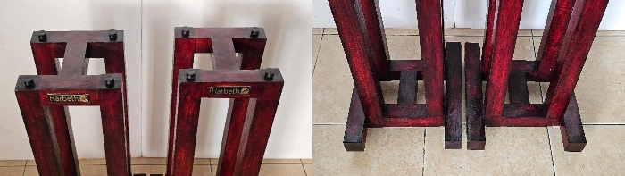 1. ATACAMA HMS 1.1 700mm ขาตั้งลำโพง(รวม Spike)สูง 29 นิ้ว ดีไซน์สวยโดดเด่น ด้วยเสากลม 3 ต้นบนฐานล่างกว้าง 25 x 30 ซม. ด้านหน้าโค้งมนไม่ใช่เหลี่ยมตรงเหมือนทั่วไป ฐานด้านบนรองรับลำโพงกว้าง 15 x 21 ซม. มีการติดตั้งปุ่มยางคุณภาพดีทั้ง 4 มุม เป็นขาตั้งลำโพงที่นักฟังเพลงระดับหูทองนิยมนำไปรองรับลำโพงผลิต England ทั้ง ProAC, B&W, TOTEM รวมทั้งลำโพงจตุรเทพอย่าง ROGER, HARBETH, STERLING, SPENDOR มากที่สุด