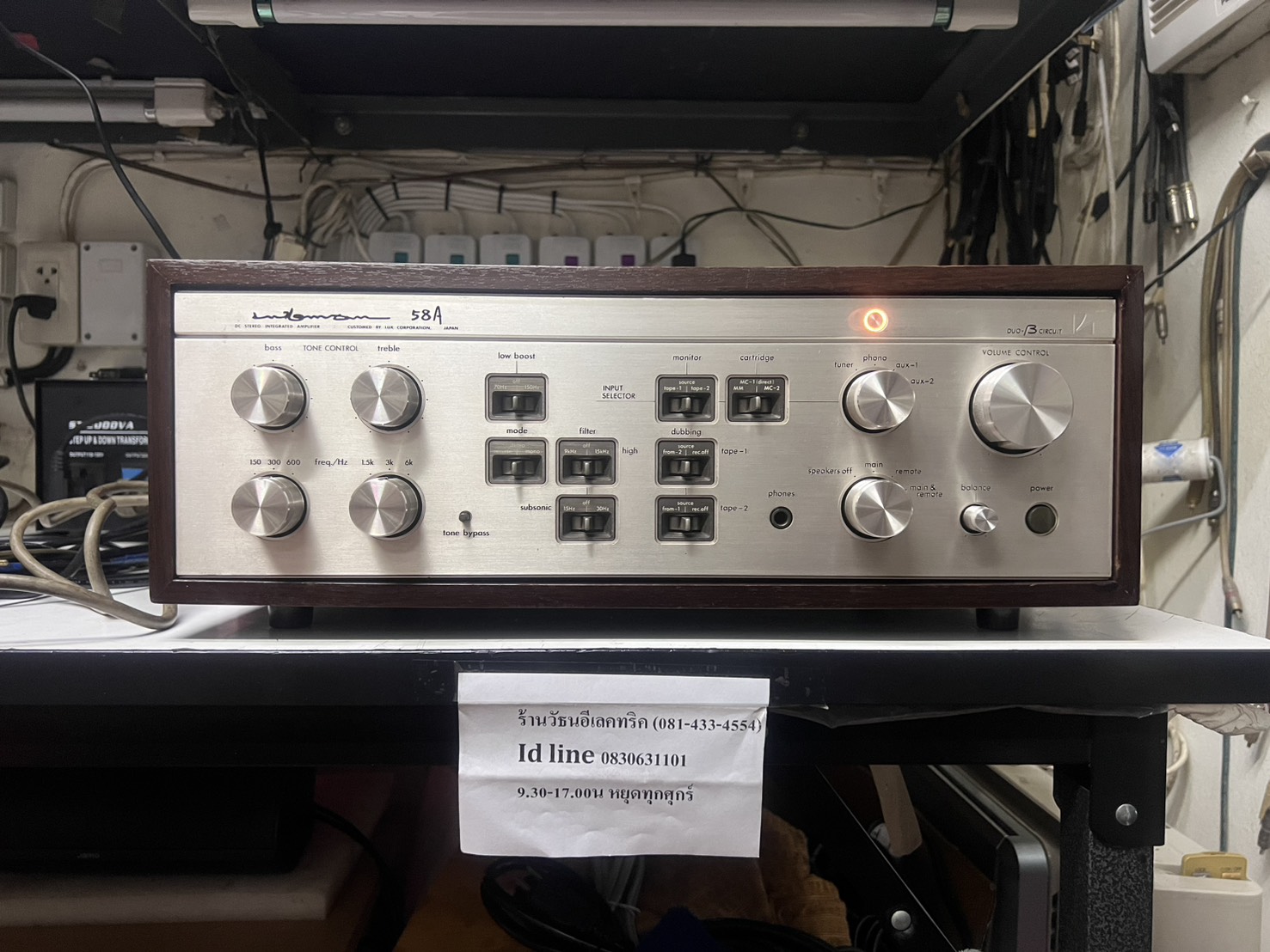 LUXMAN L-58A MADE IN JAPAN เครื่องบ้านเรา ไฟ 220V สภาพเดิมสวยมาก ฟังเพลงเสียงดีสุดยอด 5ดาวระดับโลก รุ่นใหญ่สเปคสูงงาน AUDIO GRADEแท้ทุกชิ้น มาพร้อม PHONOในตัวถึง 2ชุด รองรับทั้ง MM/MC ต่อลำโพงได้มากถึง 2ชุดรองรับระบบเสียง BI WIRE ใช้งานเหมือนใหม่ทุกระบบ เจ้าของส่งมาฝากขายหน้าร้านถูกๆเพียง 22900.-เท่านั้น