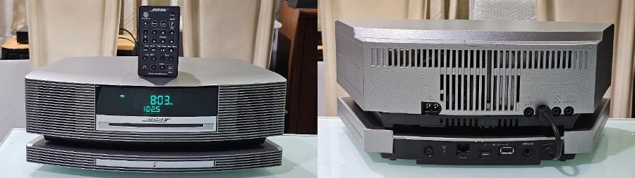 ช่องใส่แผ่น CD เป็นแบบ Slot Load ดูดเข้า และคลายออกอย่างรวดเร็วด้วยความนุ่มนวล นอกจากจะเล่นแผ่น CD, CD-R/RW ทุกฟอร์แมททั้ง Master, Copy, Write และแผ่น MP3 (ให้คุณภาพเสียงดีอย่างเหลือเชื่อ เทียบเท่ากับที่ได้จากแผ่น CD) ได้อย่างรวดเร็วแม่นยำแล้ว และแผ่น MP3 (ให้คุณภาพเสียงดีอย่างเหลือเชื่อ เทียบเท่ากับที่ได้จากแผ่น CD) แล้ว ยังรองรับการเล่นเพลงในระบบ Soundtouch ไร้สายผ่าน wifi ใหม่ล่าสุดของ Bose เช่น internat radio, deezer, spotify ไม่เพียงเท่านั้นยังรับวิทยุ FM/AM ได้อย่างคมชัดทุกสถานี โดยใช้ Digital Tuner ที่สามารถตั้งสถานีวิทยุที่ชื่นชอบในหน่วยความจำได้อย่างละ 6 สถานีอีกด้วย ที่สำคัญยังทำหน้าที่เป็นทั้งนาฬิกาบอกเวลาด้วยตัวอักษร/ตัวเลขขนาดใหญ่สีเขียวเย็นตา มองเห็นได้อย่างชัดเจน และนาฬิกาปลุก Alarm ที่ตั้งให้ปลุกได้ 2 เวลา เผื่อกันพลาดทั้งเสียงเพลงจาก CD, RADIO หรือเสียงสัญญาณได้ตามความชื่นชอบ พร้อมทั้งยังตั้งเวลาหลับ หรือให้เครื่องปิด Sleep ได้โดยอัตโนมัติตามเวลาที่ต้องการอีกด้วย ที่สำคัญยังติดตั้งระบบสัมผัสบนตัวเครื่องด้านบน สำหรับเปิด-ปิดเครื่อง ไม่เพียงเท่านั้นยังสามารถต่อเชื่อม Bluetooth ให้เพลิดเพลินไปกับบทเพลงทั้งหมดของคุณได้ง่ายๆ จากสถานีบริการเพลงออนไลน์หรือรับฟังวิทยุจากอินเทอร์เน็ต และฟังเพลงจากคลังเพลงที่มีอยู่ พร้อมทั้งเชื่อมต่อแบบไร้สายกับเครือข่าย Wi-Fi ภายในบ้านของคุณโดยไม่ต้องใช้อุปกรณ์เสริมอื่นๆ เพิ่มเติม เพียงกดปุ่มบันทึกช่องรายการผ่านรีโมทหรือ ผ่านแอพพลิเคชั่น หรือเชื่อมต่อด้วยระบบบลูทูธ เพื่อเล่น/รับฟังเพลงโปรดที่ชื่นชอบจากมือถือ/แท็ปเล็ตได้ทันทีอย่างง่ายดาย ด้านหลังของเครื่องมีช่องต่อ BoseLink ที่ต่อไปยังตัว Wave Music System Multi-CD Changer รวมทั้ง Headphone, Aux In และเครื่องเสียงร่วมสมัยอย่าง iPod/iPhone ได้อีกด้วย ตัวเครื่องขนาดกระทัดรัด กว้าง 37 สูง 11 ลึก 23 ซม. น้ำหนักประมาณ 7 กก. ทำให้สามารถพกติดตัวไปใช้งานตามสถานที่ต่าง ๆ ได้โดยสะดวก