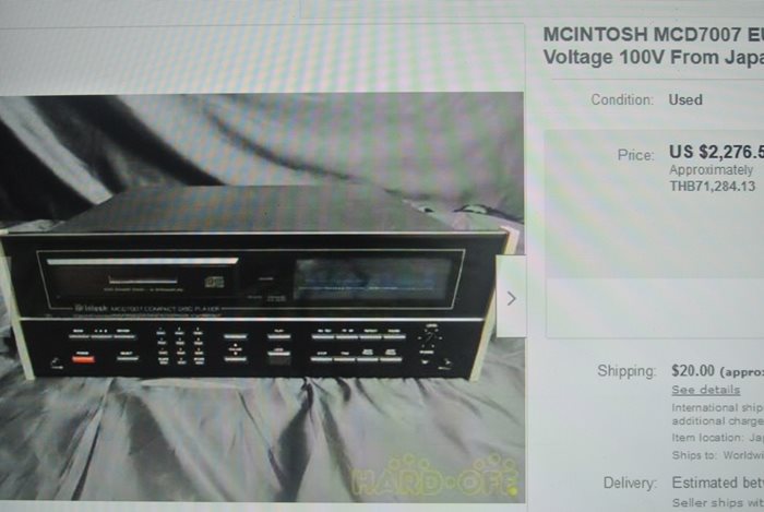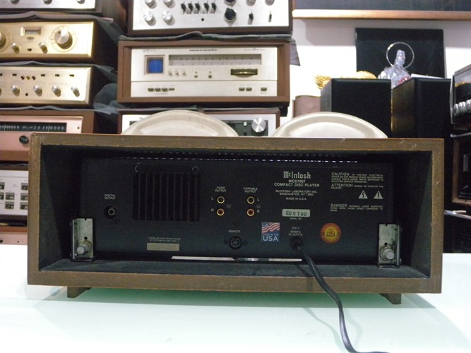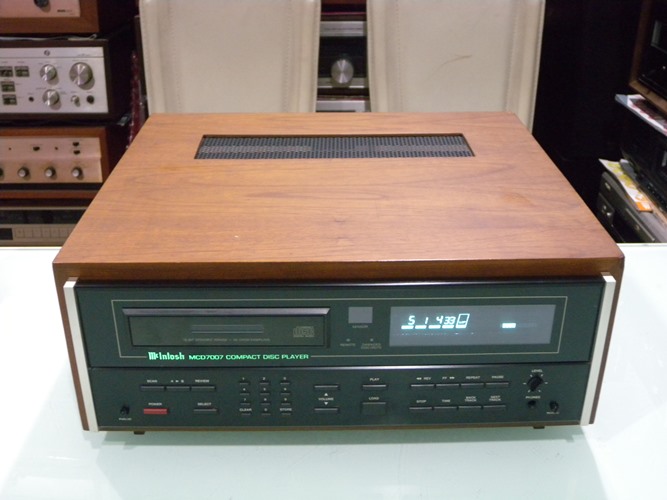 McINTOSH MCD-7007 เครื่องเล่น Audiophile CD Player ระดับ Hi-End ที่หาได้ยากมาก ๆ ติดตั้งแต่อุปกรณ์ ชิ้นส่วน วัสดุ และวงจรที่คัดสรรมาแต่ Video/Audiophile Grade ระดับ Supreme Premium เท่านั้น ตามนโยบายจะใช้แต่สิ่งที่ดีที่สุดเท่านั้น ใช้ Burr-Brown pcm1795 dac chip โดยแยกซ้ายขวาอิสระ มี Digital Input ใช้เป็น D to A ได้ พร้อมทั้ง Pre Digital ต่อตรงเข้า Amplifier ได้เลย รวมทั้ง Data Input Range : 16-20 Bits, 8 x Oversampling, S/PDIF PCM Audio และ D/A Conversion : Dual 20 Bits Co-linear PCM1702 สามารถเล่น และอ่านแผ่น CD ได้ทุกฟอร์แมท ตัวเครื่องมีขนาดใหญ่ และหนักมาก กว้าง 41 สูง 14 ลึก 33 ซม. น้ำหนักประมาณ 10 กก.