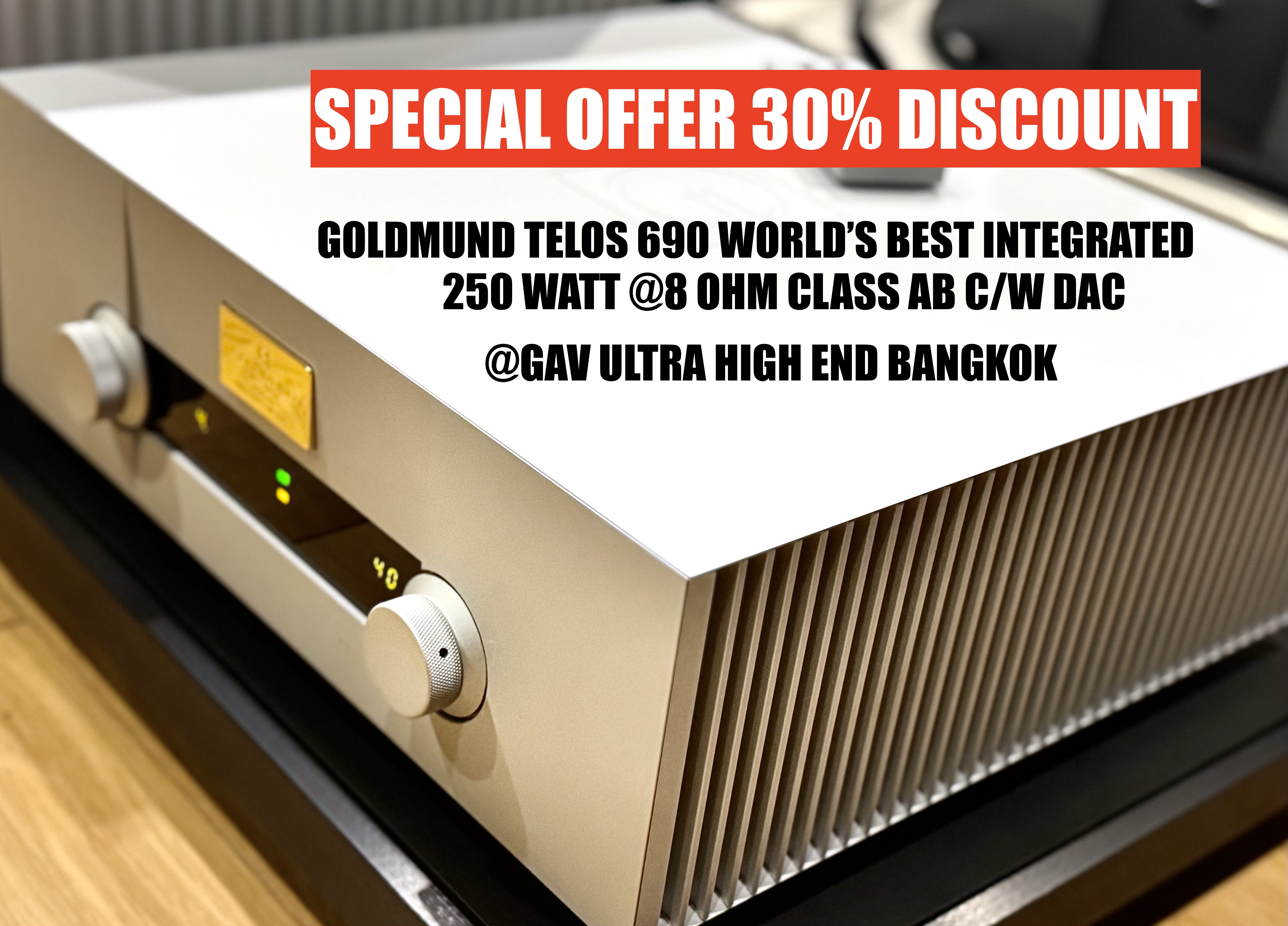 โปรฯลดราคาพิเศษ 30% จากราคาปรกติ 1,350,000 บาท เหลือเพียง 950,000 บาท เท่านั้น !!! ดีกว่านี้ ไม่มีแล้วครับ GOLDMUND TELOS 690 "the World's Best Reference Ultra High End Integrated come with Hi-Res DAC built-in" , SWISS MADE SINCE 1978 ที่สุดของเครื่องอินทิเกรตระดับอัลตร้าไฮเอ็นด์ขนานแท้ที่คงแนวเสียงให้ความเป็นอนาล็อค อย่างที่หาไม่ได้ในแบรนด์อื่นๆ มาพร้อมกับการออกแบบตัวเครื่องแบบ High Precision CNC Aluminum Casing พร้อมต้นแบบระบบ Mechanical Grounding ขจัดแรงสั่นสะเทือน ความสวยงามปราณีตไร้กาลเวลา แอมป์ Class AB กำลังขับเหลือเฟือที่จะขับลำโพงทุกคู่บนโลกใบนี้ กำลังขับต่อเนื่อง 250 /320 วัตต์ที่ 8/4 โอมห์ตามลำดับ นำเข้า และ จัดจำหน่าย โดย GAV Ultra High End Bangkok โทร หรือ แอดไลน์ มาที่ 081 4423549