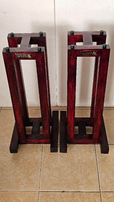 1. ATACAMA HMS 1.1 700mm ขาตั้งลำโพง(รวม Spike)สูง 29 นิ้ว ดีไซน์สวยโดดเด่น ด้วยเสากลม 3 ต้นบนฐานล่างกว้าง 25 x 30 ซม. ด้านหน้าโค้งมนไม่ใช่เหลี่ยมตรงเหมือนทั่วไป ฐานด้านบนรองรับลำโพงกว้าง 15 x 21 ซม. มีการติดตั้งปุ่มยางคุณภาพดีทั้ง 4 มุม เป็นขาตั้งลำโพงที่นักฟังเพลงระดับหูทองนิยมนำไปรองรับลำโพงผลิต England ทั้ง ProAC, B&W, TOTEM รวมทั้งลำโพงจตุรเทพอย่าง ROGER, HARBETH, STERLING, SPENDOR มากที่สุด