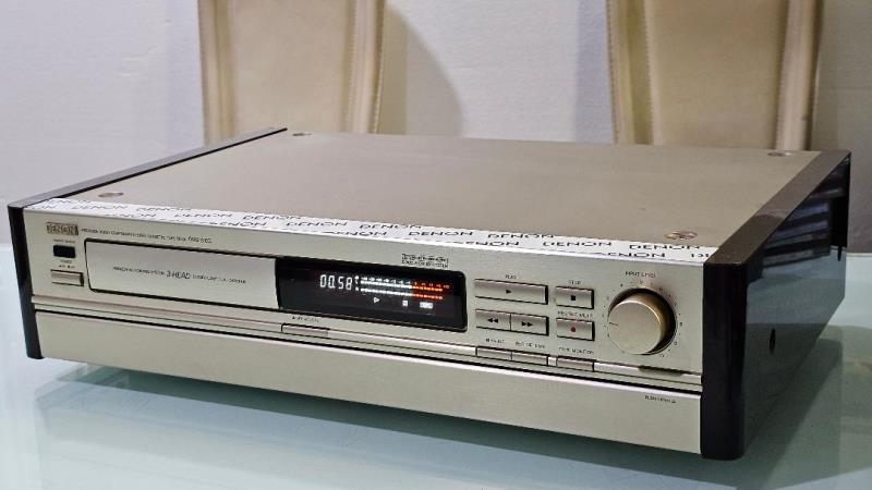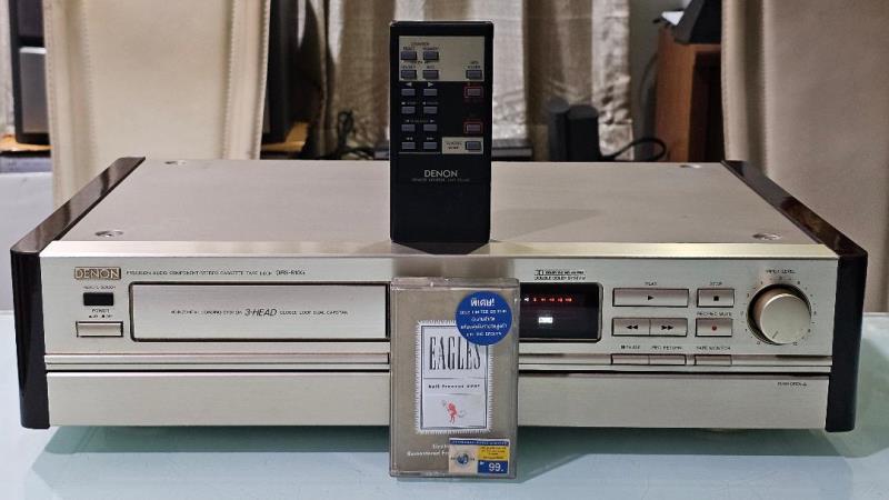 DENON DRS-810G ที่สุดเครื่องเล่นเทปคาสเซ็ท 3 หัวเทป Studio Class Dual-Tracer Discrete 3 Head Technology / Dual Capstan Record and Player Stereo Cassette Deck / Silent Mechanism / 4-track, 2-channel Auto record level and Stereo Cassette Deck Tape Speed: 4.8 cm/s 1 x record, 1 x playback, 1 x erase รุ่นใหญ่สุด Top of The Line ระดับ Hi-End โดดเด่นด้วยการออกแบบถาดวางตลับ Tape Cassette เป็นแบบ Horizontal Loading System / Closed Loop Dual Capstan ที่เลื่อนเข้า-ออก และวางนอนเช่นเดียวกับถาด CD ตัวเครื่องด้านข้างตัวเครื่องด้วยไม้ธรรมชาติสี Walnut ลวดลายสวยงามเป็นอย่างมาก ที่สำคัญตัวเครื่องด้านหน้ายังเป็นแบบสองชั้น ด้านล่างสุดเป็นบานเปิด-ปิด เพื่อเก็บปุ่มควบคุมการทำงานต่าง ๆ ไว้ภายใน ทำให้ตัวเครื่องดูเรียบง่าย สะอาดตามากยื่งขึ่น แสดงระดับเสียงของลำโพงทั้ง 2 ข้างเป็นแถบไฟตาแมว Eye Catching แนวนอน 20 ระดับสีขาว และส้ม สวยงามอลังการ มองเห็นได้อย่างชัดเจน เพิ่มสีสัน และสร้างบรรยากาศในการฟังเพลงได้เป็นอย่างมาก